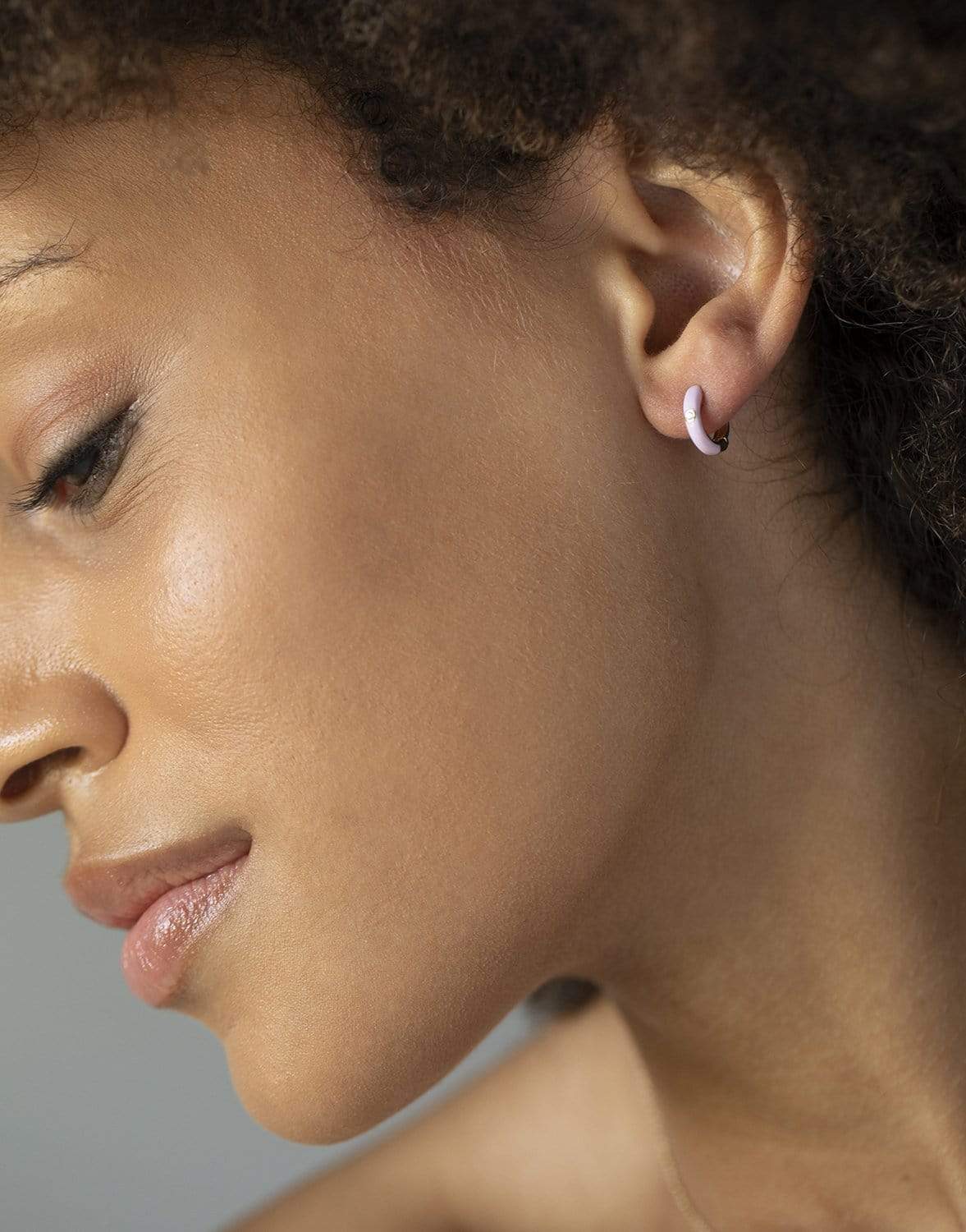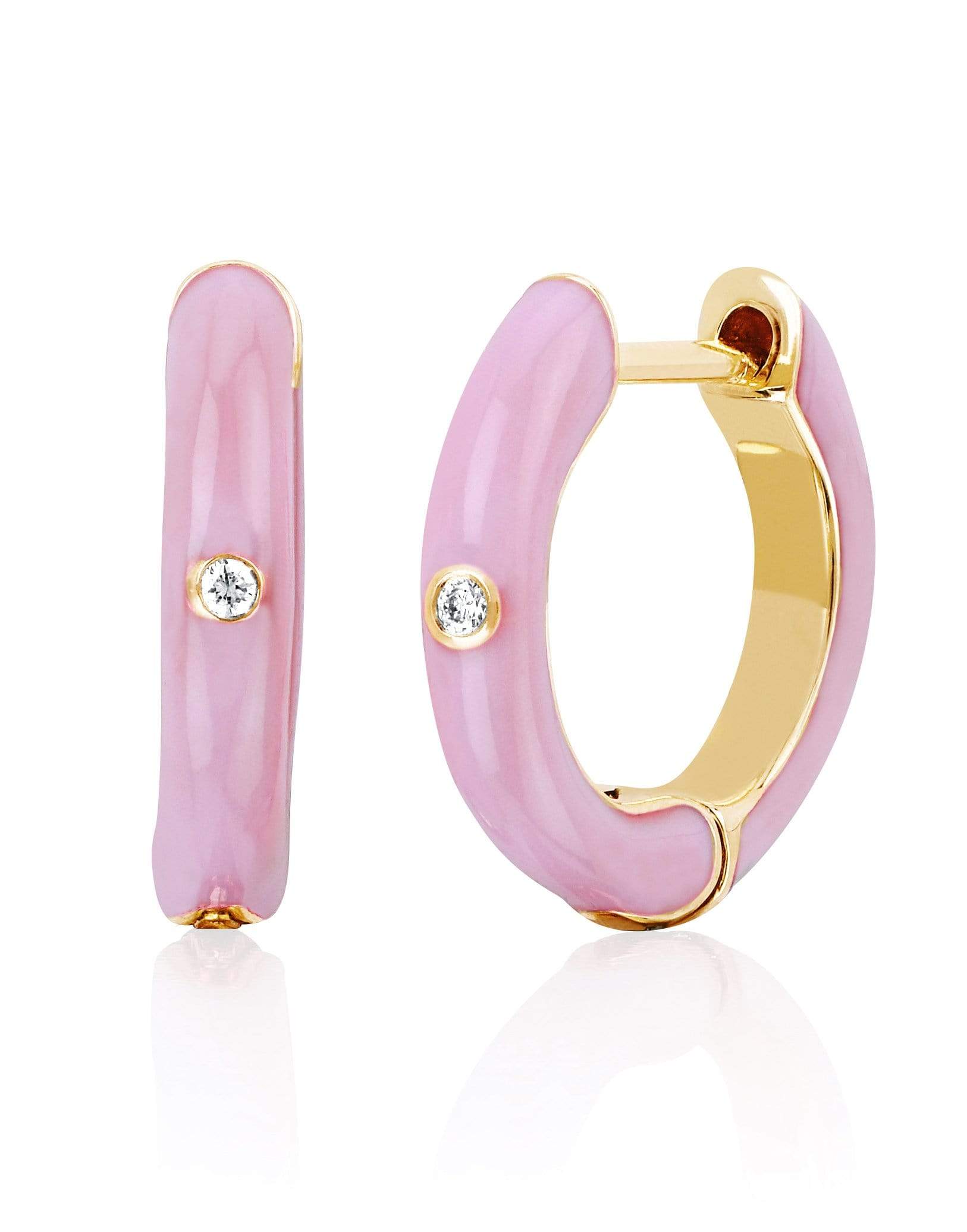 EF Collection diamond light pink enamel huggies. Our light pink enamel huggie earring features 0.02 carats of diamond set in 14k gold.