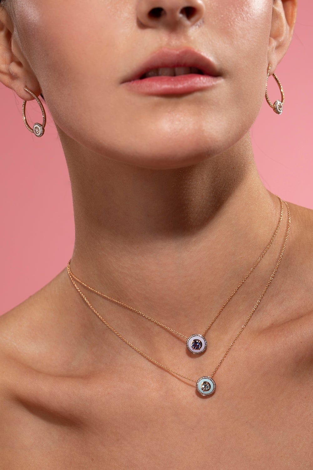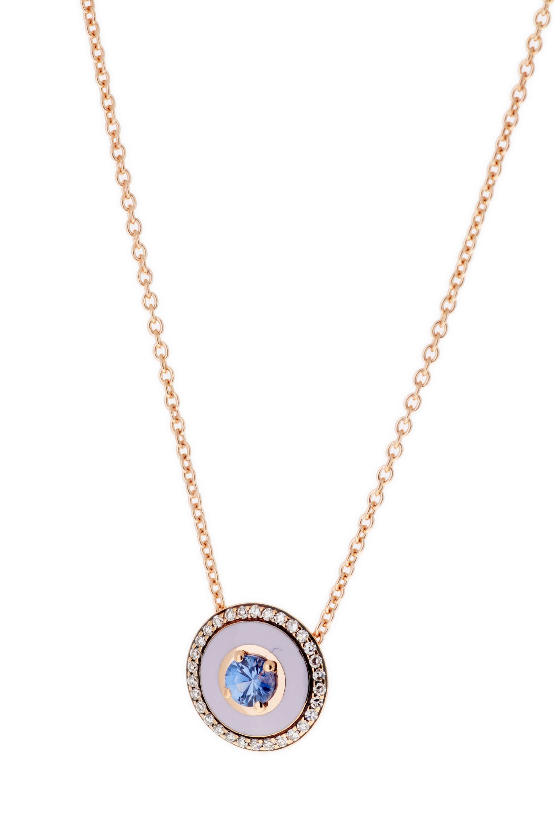 Selim Mouzannar pendant in pink gold and lilac enamel set with tanzanite and diamonds.