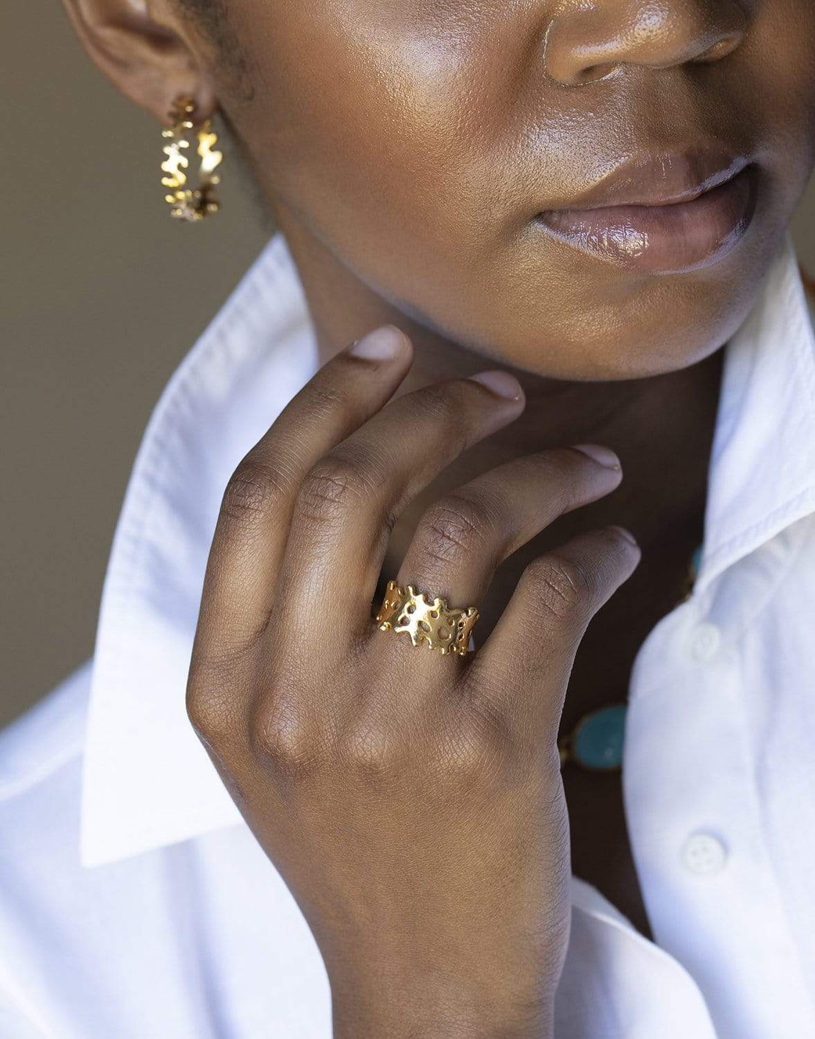 Gurhan gold band ring, wide cutout, from the liquid collection. Lovingly handcrafted in their workshop in Istanbul by artisans personally trained by Gurhan.