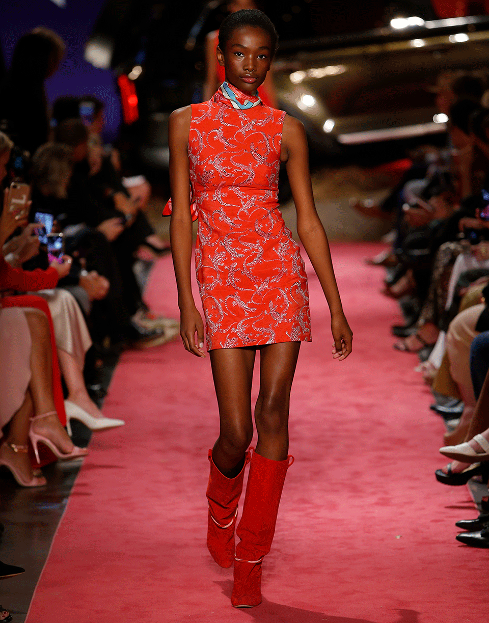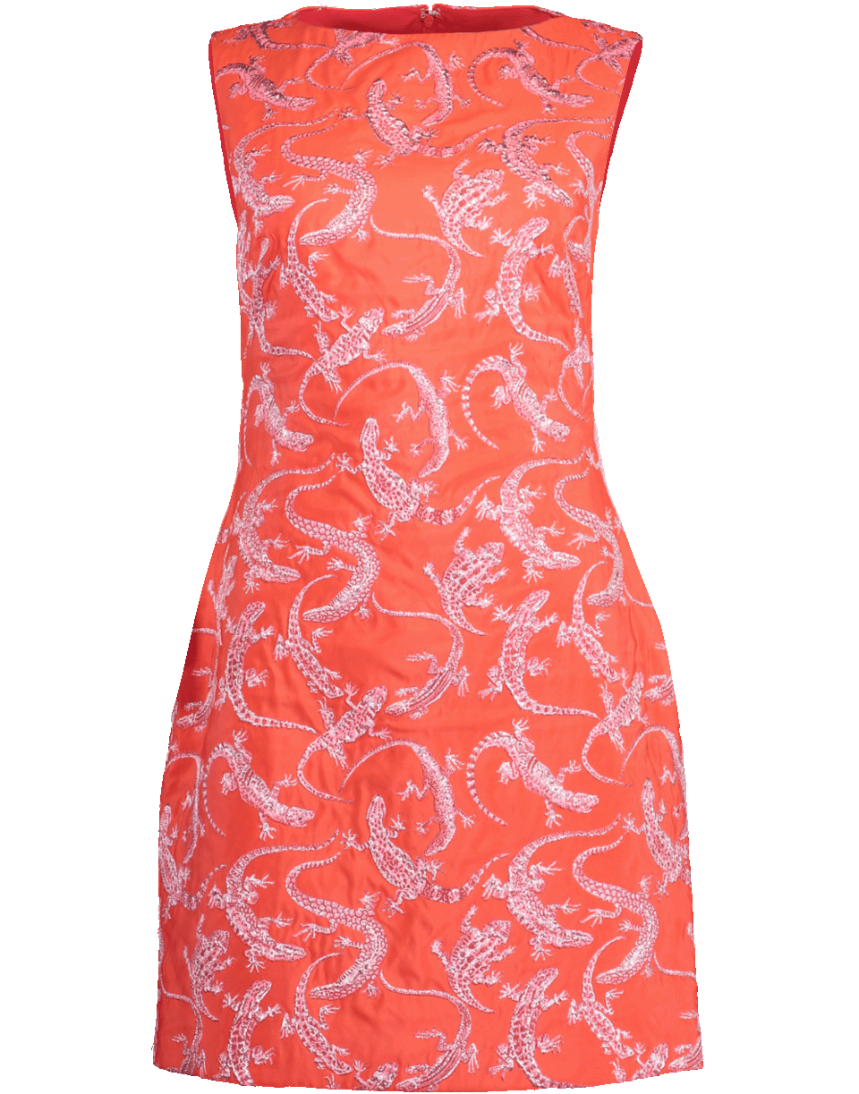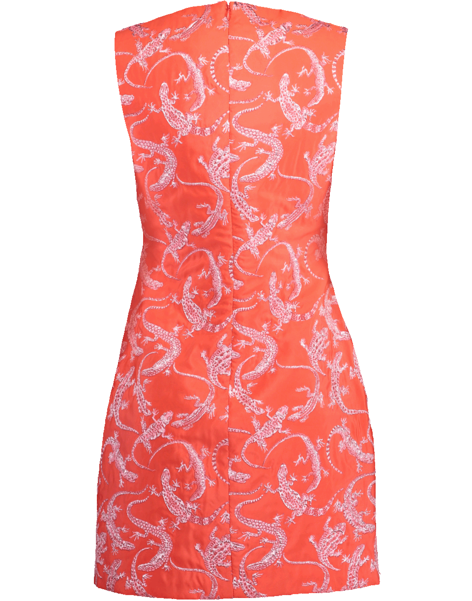 Jacquard mini dress by Brandon Maxwell. This sleeveless jacquard taffeta dress features a boat neckline, fitted silhouette, concealed zip closure, thigh length cut, and lizard print throughout.