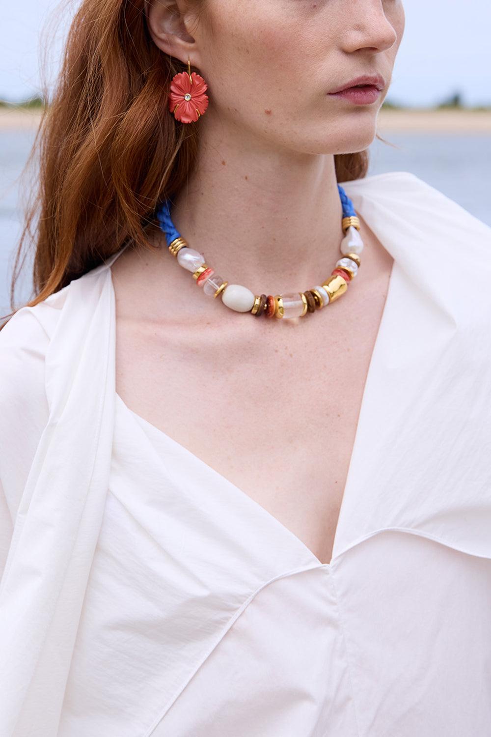 Lizzie Fortunato blue sea glass beach necklace in multi.