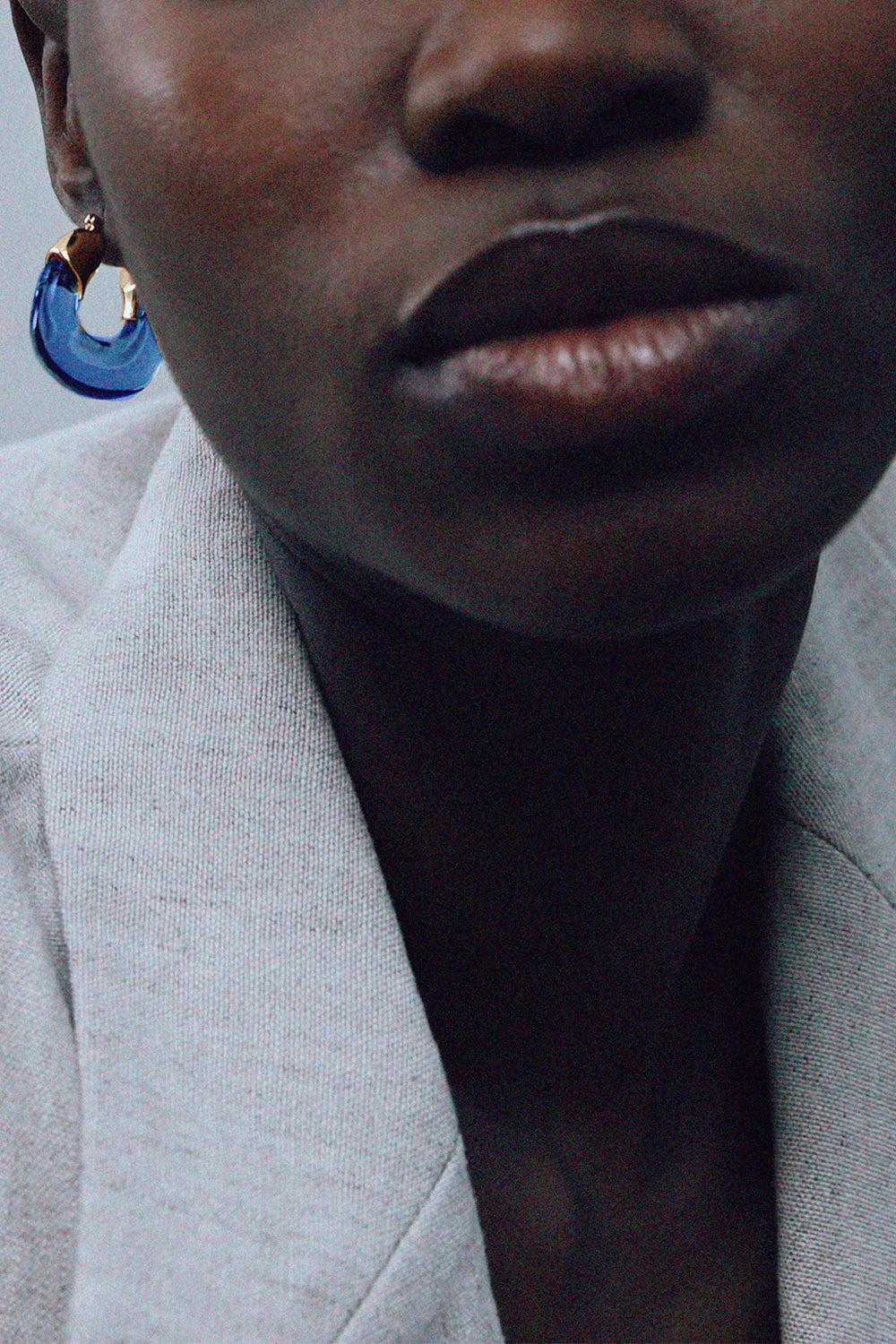 Make it mini! Our iconic, best-selling hoop earrings just got even more wearable, with a slightly smaller drop to suit any style situation. In gold-plated brass and bright blue-colored resin.