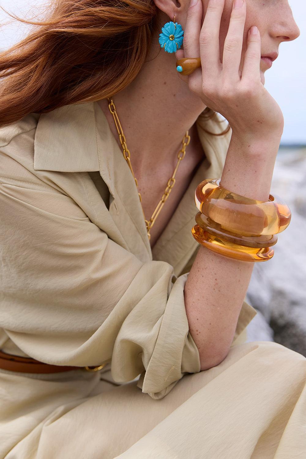 Lizzie Fortunato marigold ridge cuff bracelet in orange.
