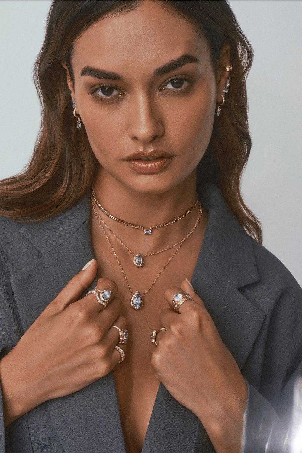 The Atlantis Collection was born out of Logan's infatuation and deep love of the ocean and the magical world beneath the surface. The idea of the lost city of Atlantis has remained in her heart and mind. Atlantis was an underwater world built on the foundation of love, synchronicity and magic. The search for the meaning of life and one's purpose is like finding hidden treasure. May this piece remind you to go beyond your consciousness and discover your true purpose and self. Aquamarine is often associated with tranquility, serenity, clarity, and harmony. This soothing sea blue stone also represents transformation and rebirth. Aquamarine has the power to keep you feeling balanced in emotional clarity, allowing you to be more gentle to yourself and others. It is also called the Stone of Courage, promoting inner strength and soft resilience, working with the throat chakra to keep your voice strong. It’s time for overwhelm to be washed away so you can step out into clearer communication and be in further control of what you desire.