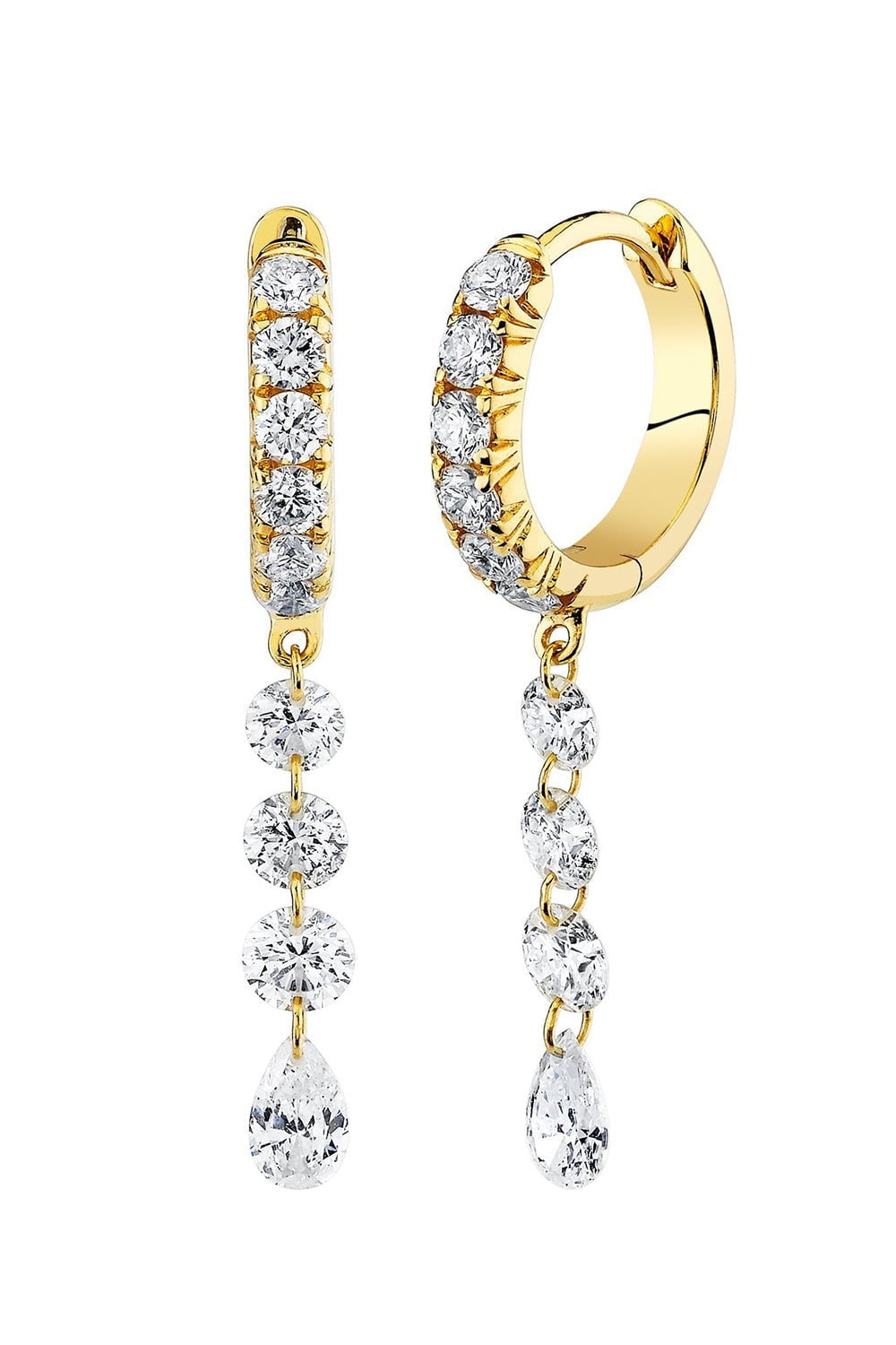 Logan Hollowell mini eau de rose diamond drop huggie earrings in yellow gold.