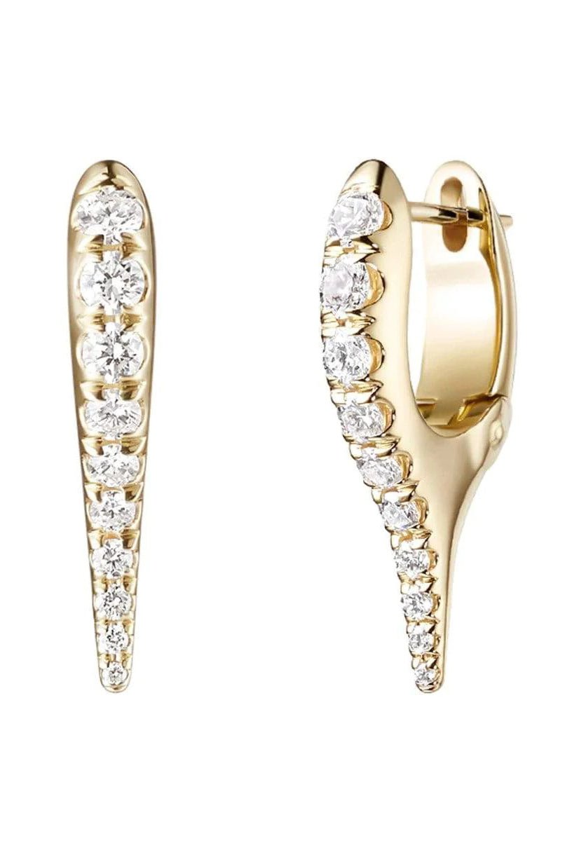 Melissa Kaye Lola mini needle hinged hoop earrings with pave diamonds. For pierced ears.