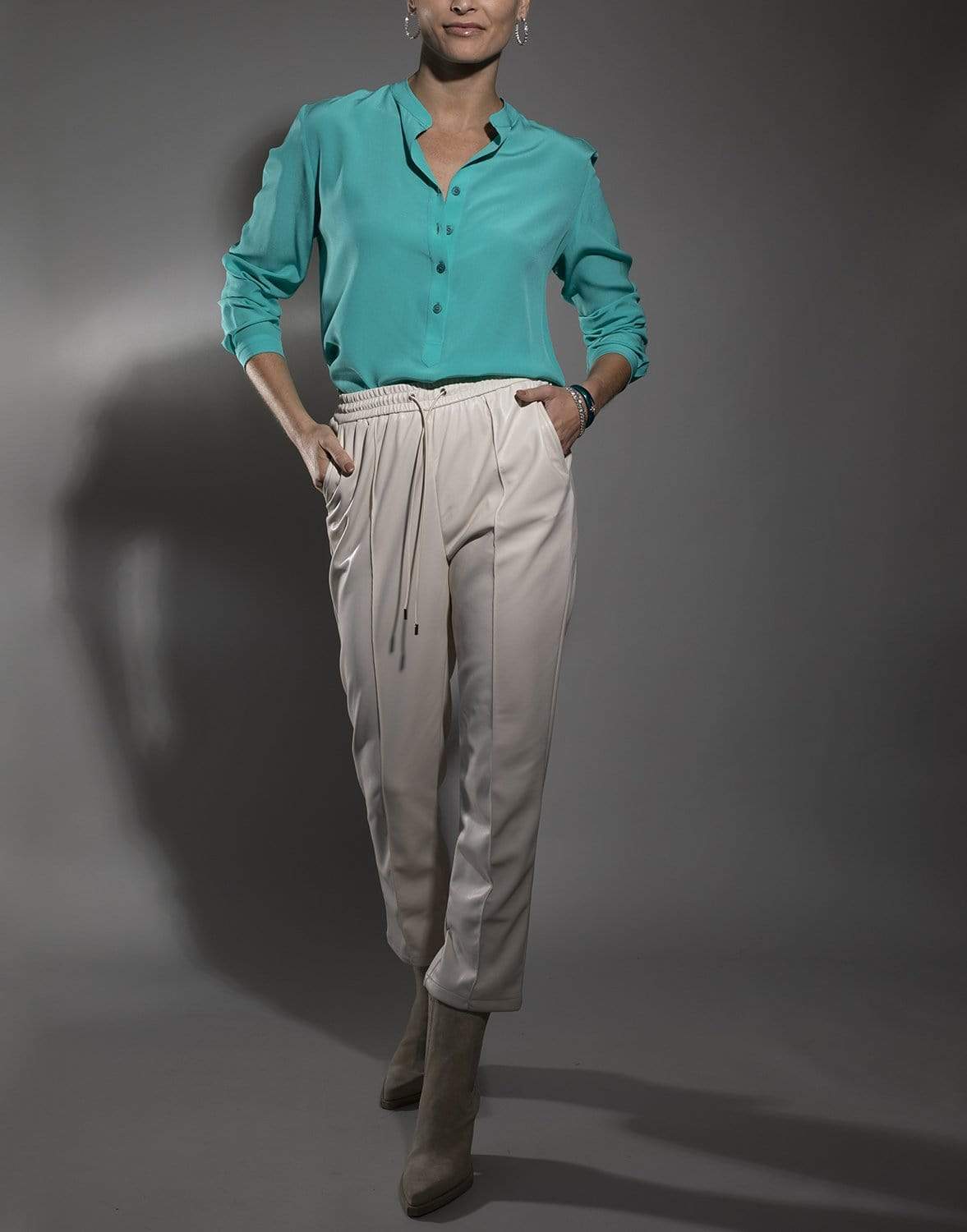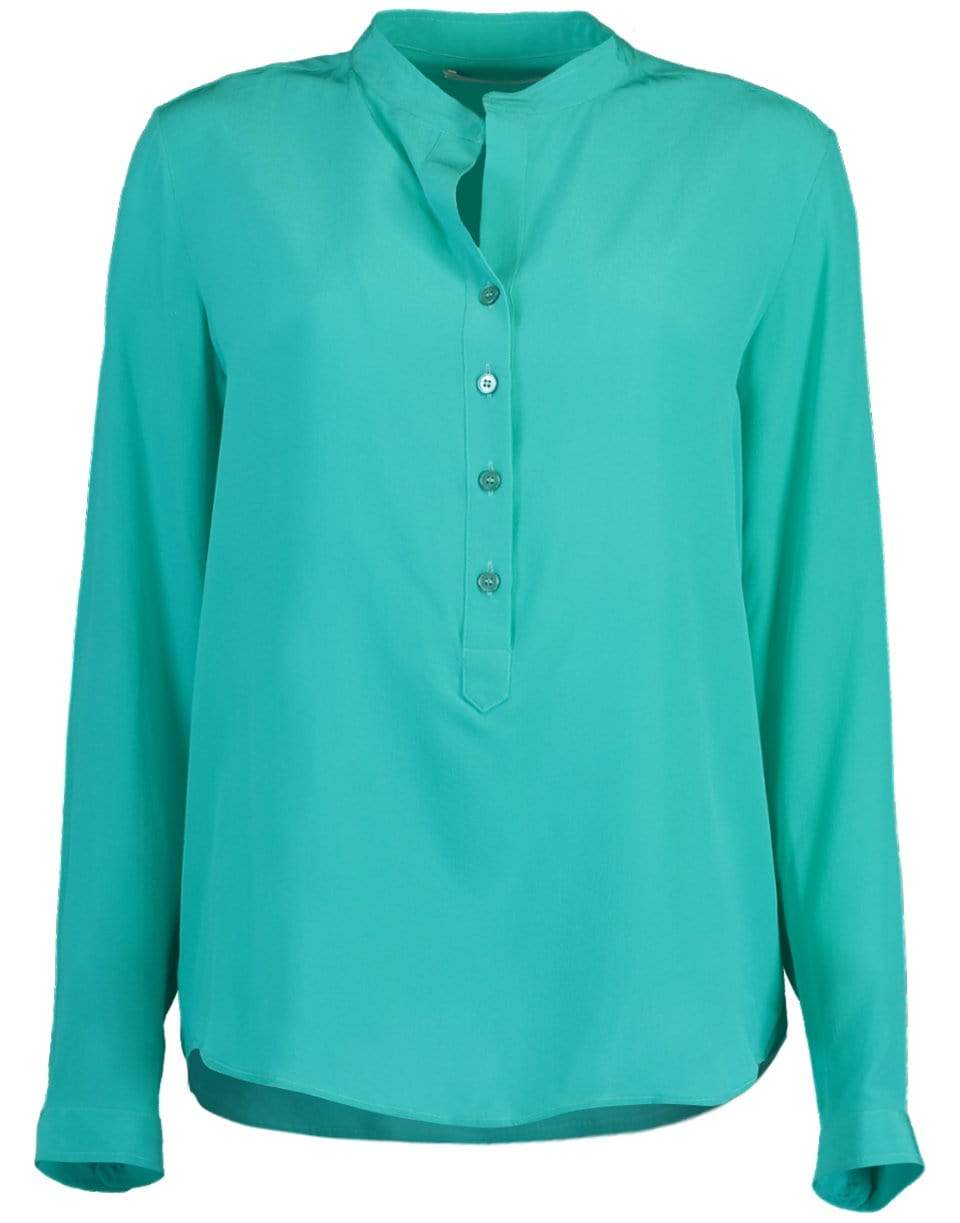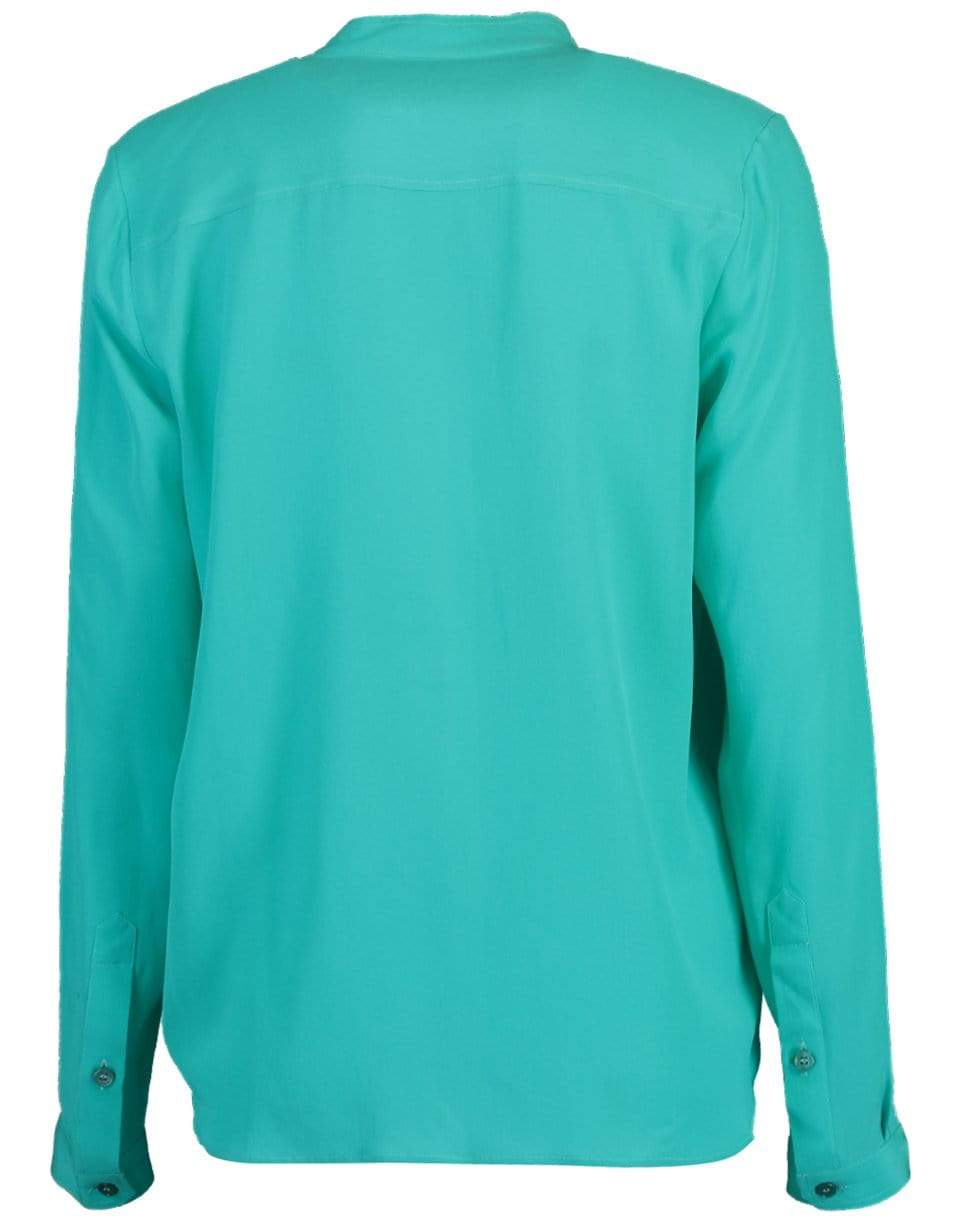 Stella Mccartney long sleeve eva shirt in turquoise. Made from 100% silk, this long-sleeved Eva shirt showcases the brand's mastery of simple elegance.