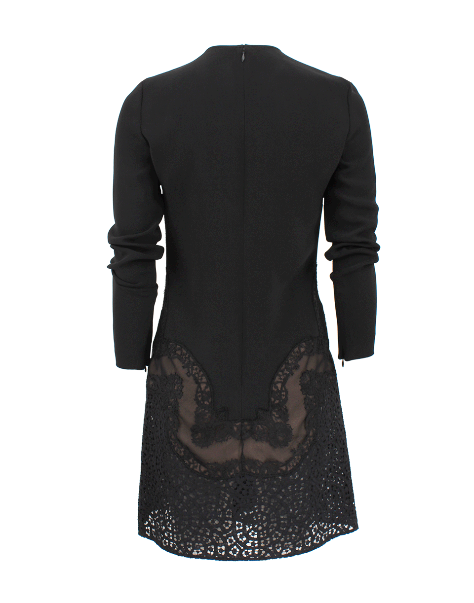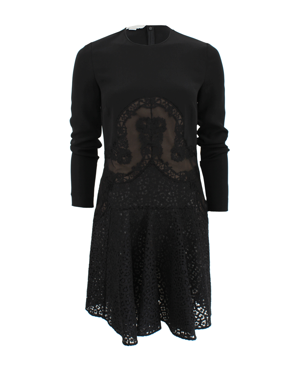 Laced in luxury, this long sleeve flounce hem lace dress by Stella McCartney is intricately exquisite. Pair with ankle booties and a studded clutch for added edge. Fit: True to Size 44% Rayon, 32% Acetate, 4% Elastane Dry Clean Available in Black