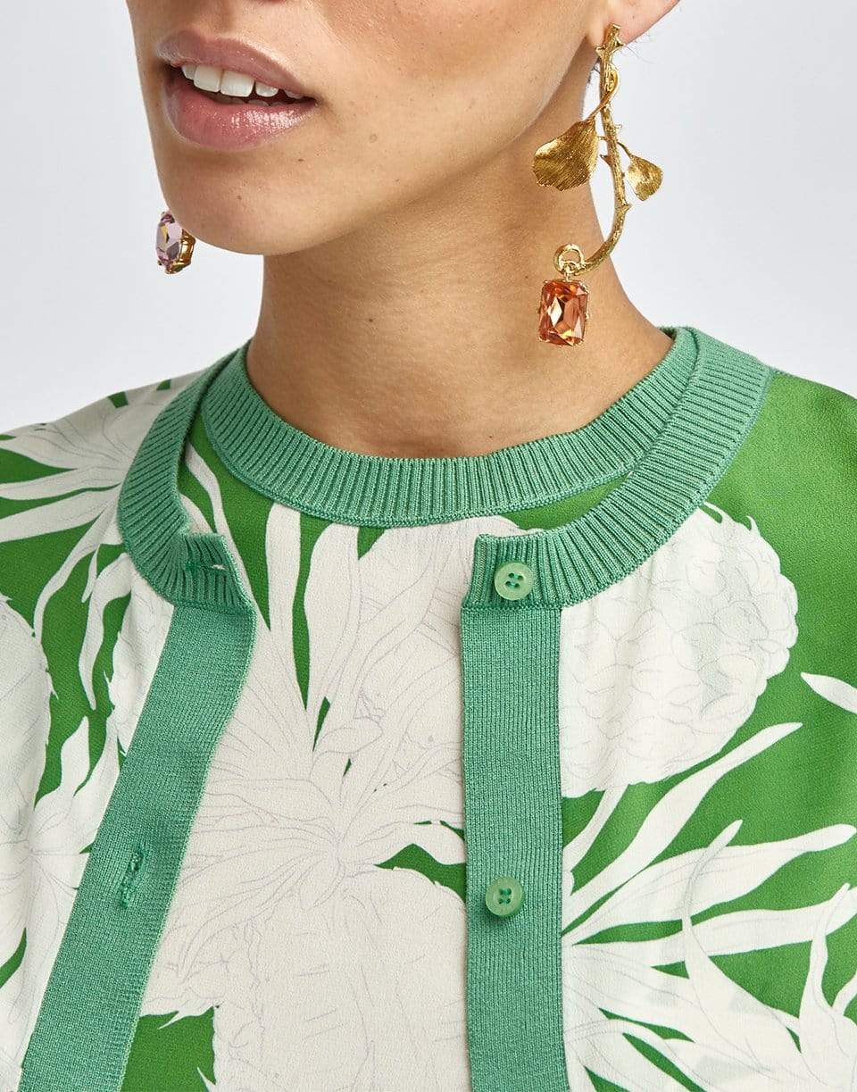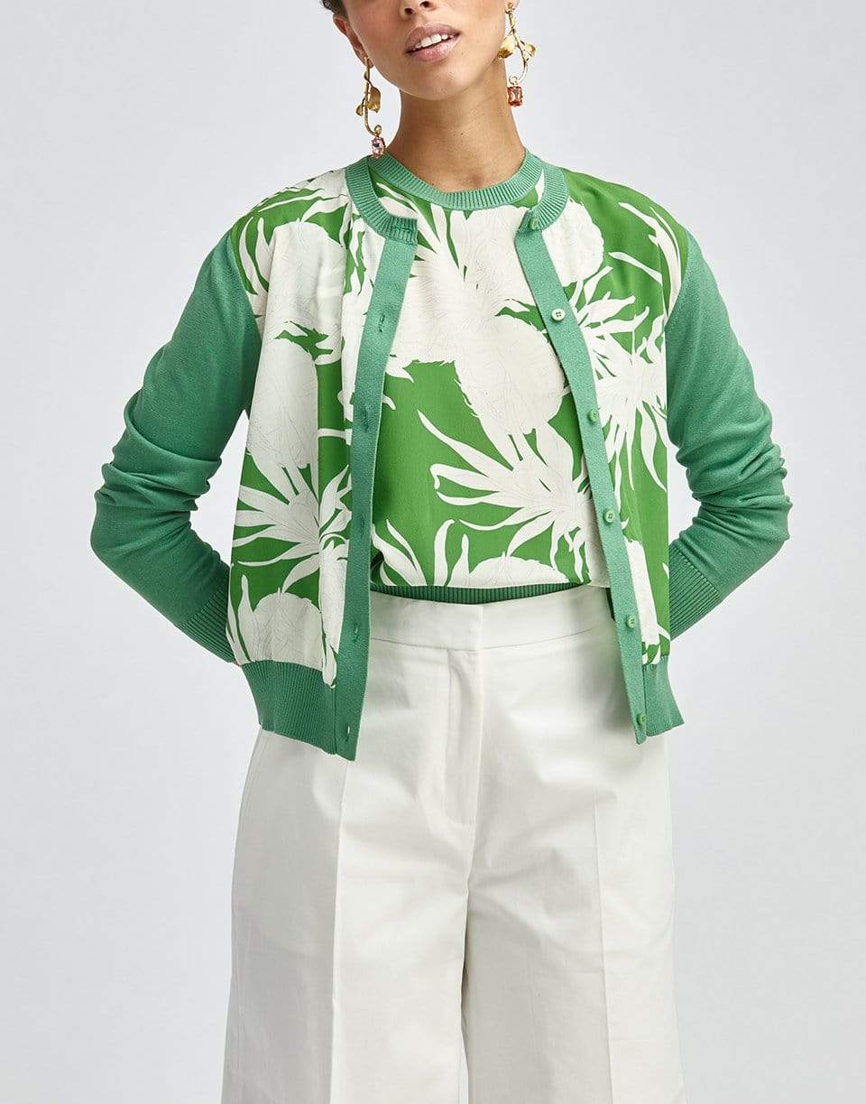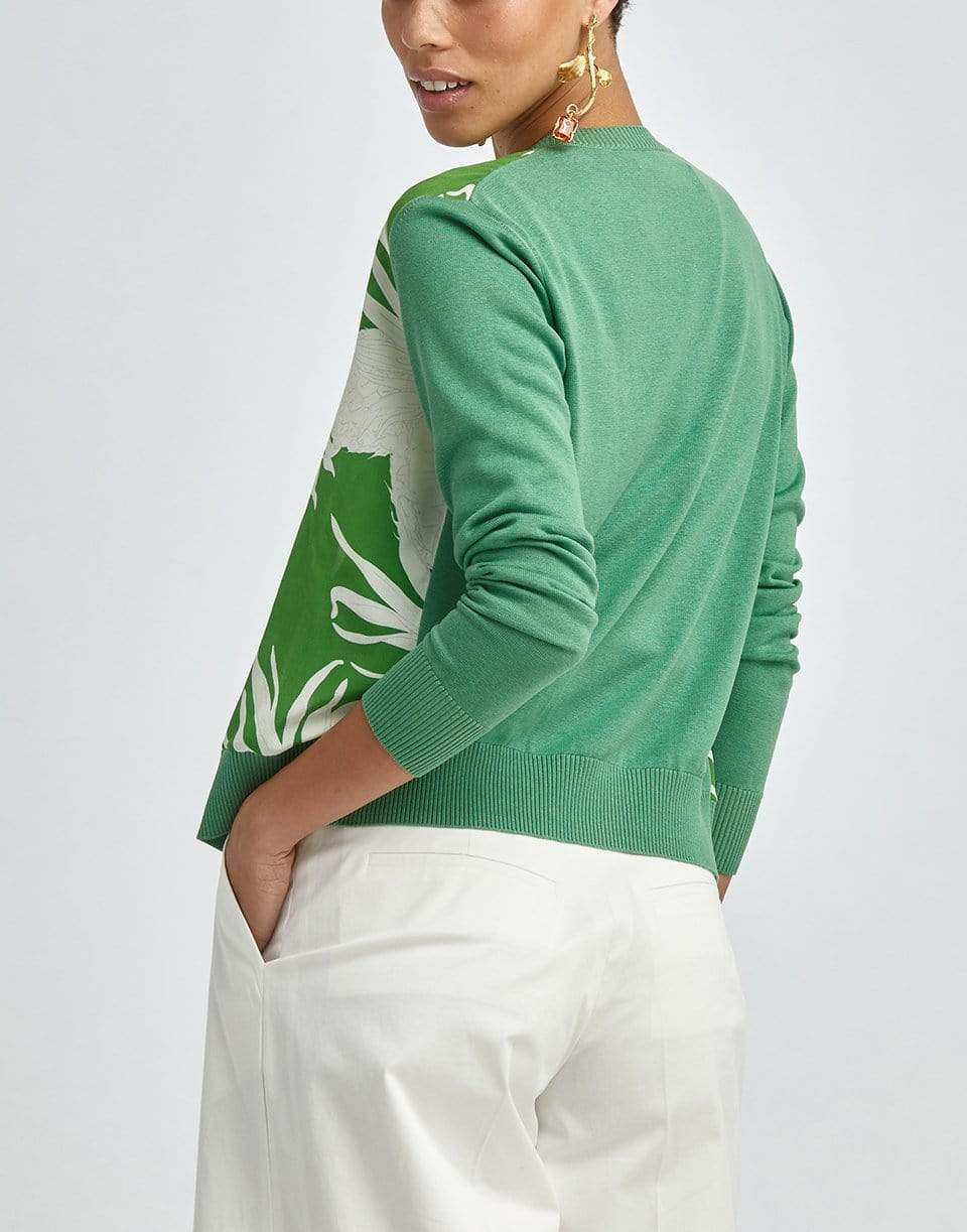Oscar de la Renta knit cardigan with long sleeves in kelly color with CDC inset.