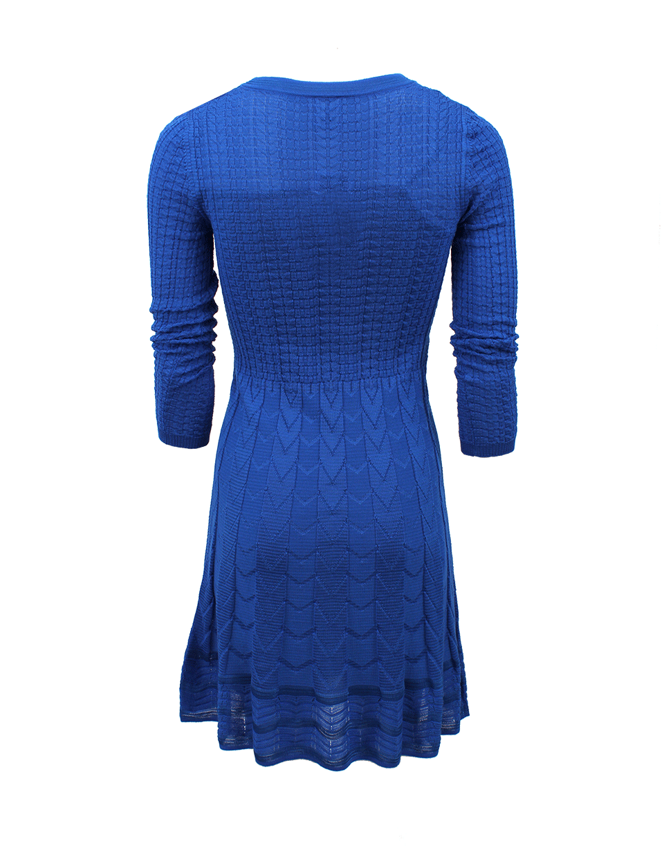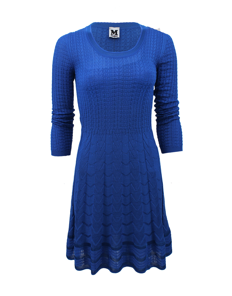 Bold and blue with undeniable comfort, M Missoni’s long sleeve knit dress is adorably chic. Accent the waistline with a metallic belt for added shape. Fit: True to Size 54% Fleece, 46% Viscose 100% Polyester Machine Wash Cold Available in Cobalt