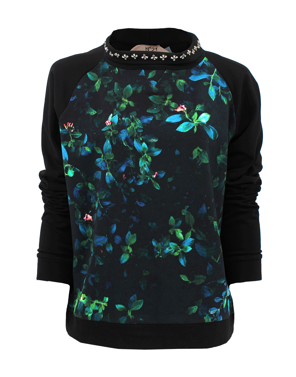 Whimsically stunning, No. 21’s long sleeve print front pullover is the definition of laidback luxe. Throw it on with distressed boyfriend jeans and embellished sneakers for weekend errands. Fit: True to Size 93% Cotton, 7% Spandex Dry Clean Available in Black