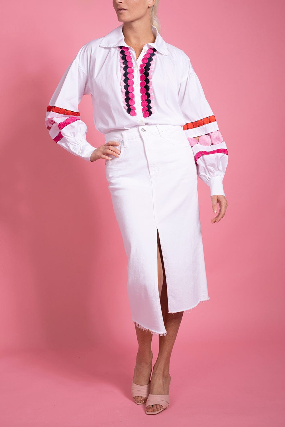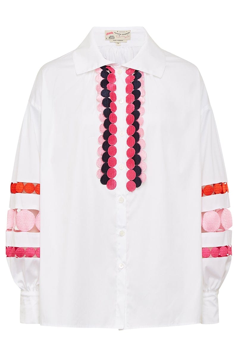 Maison Common long sleeve tunic with dot detail in white.