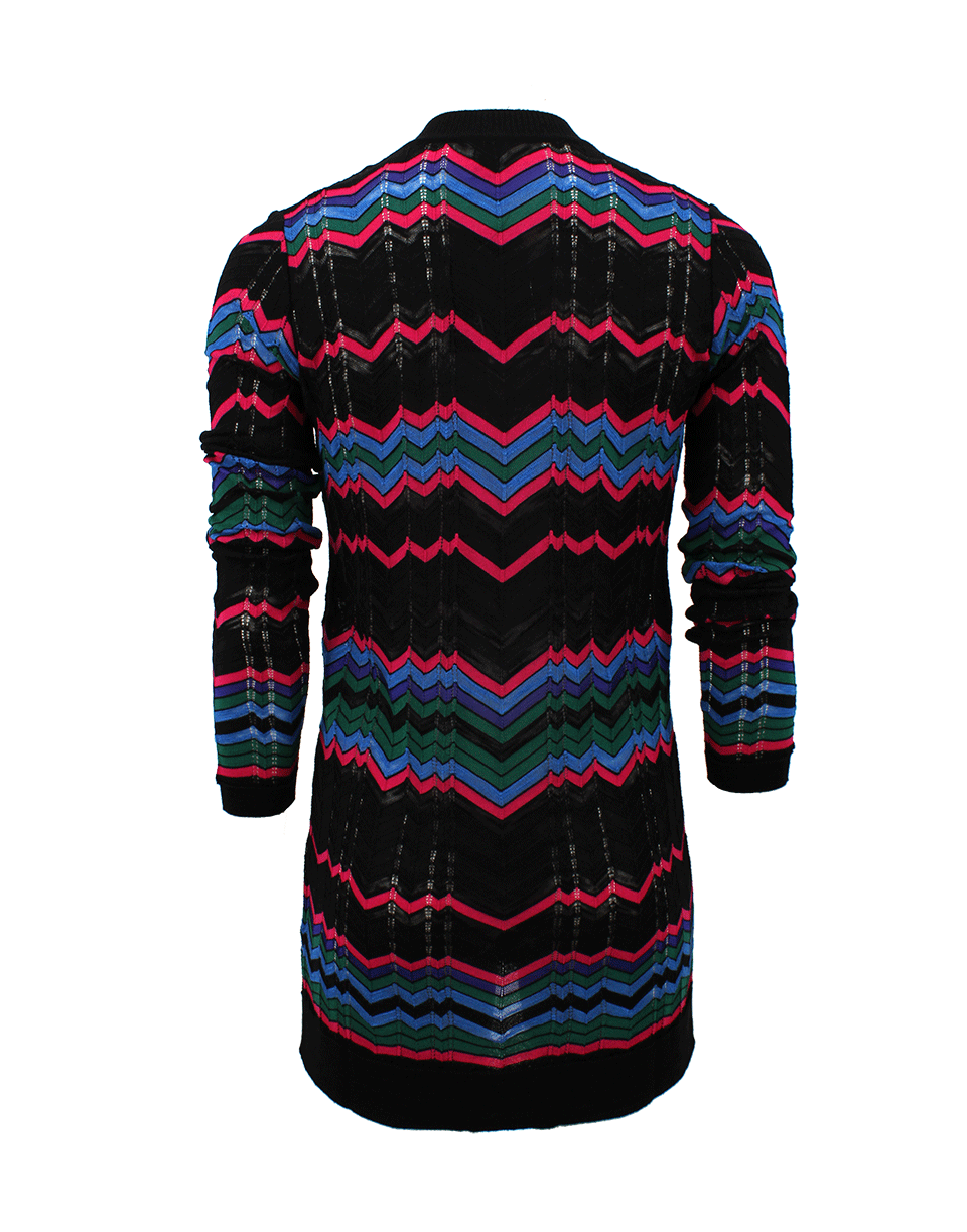 Layer up in comfort this season with signature style in M Missoni’s long zig zag cardigan. Pair with a modal tee and legging pants for a day of traveling. Fit: True to Size 32% Cotton, 29% Nylon, 21% Wool, 18% Viscose Hand Wash Available in Black/Multi