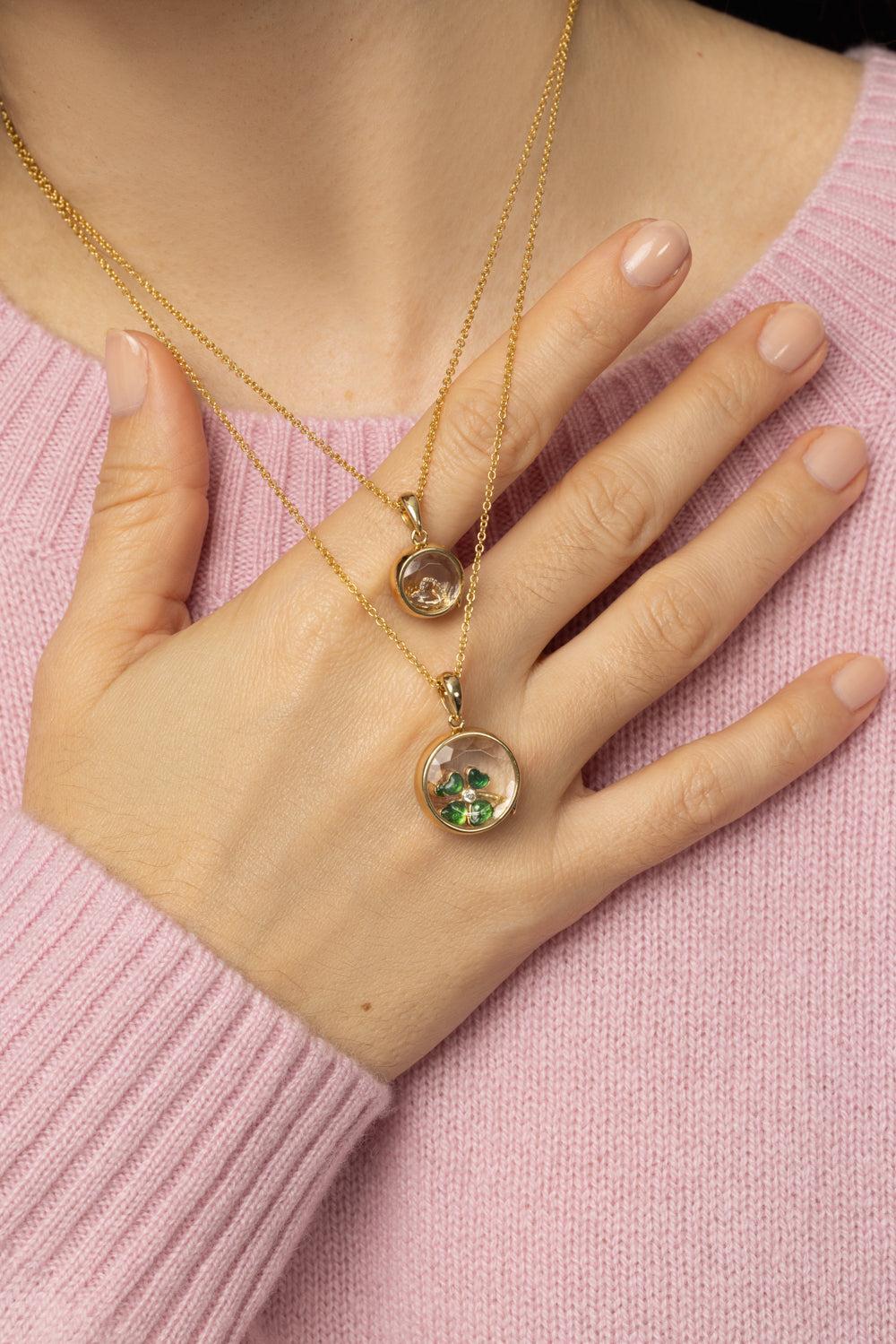 Loquet mini round locket pendant necklace in yellow gold.