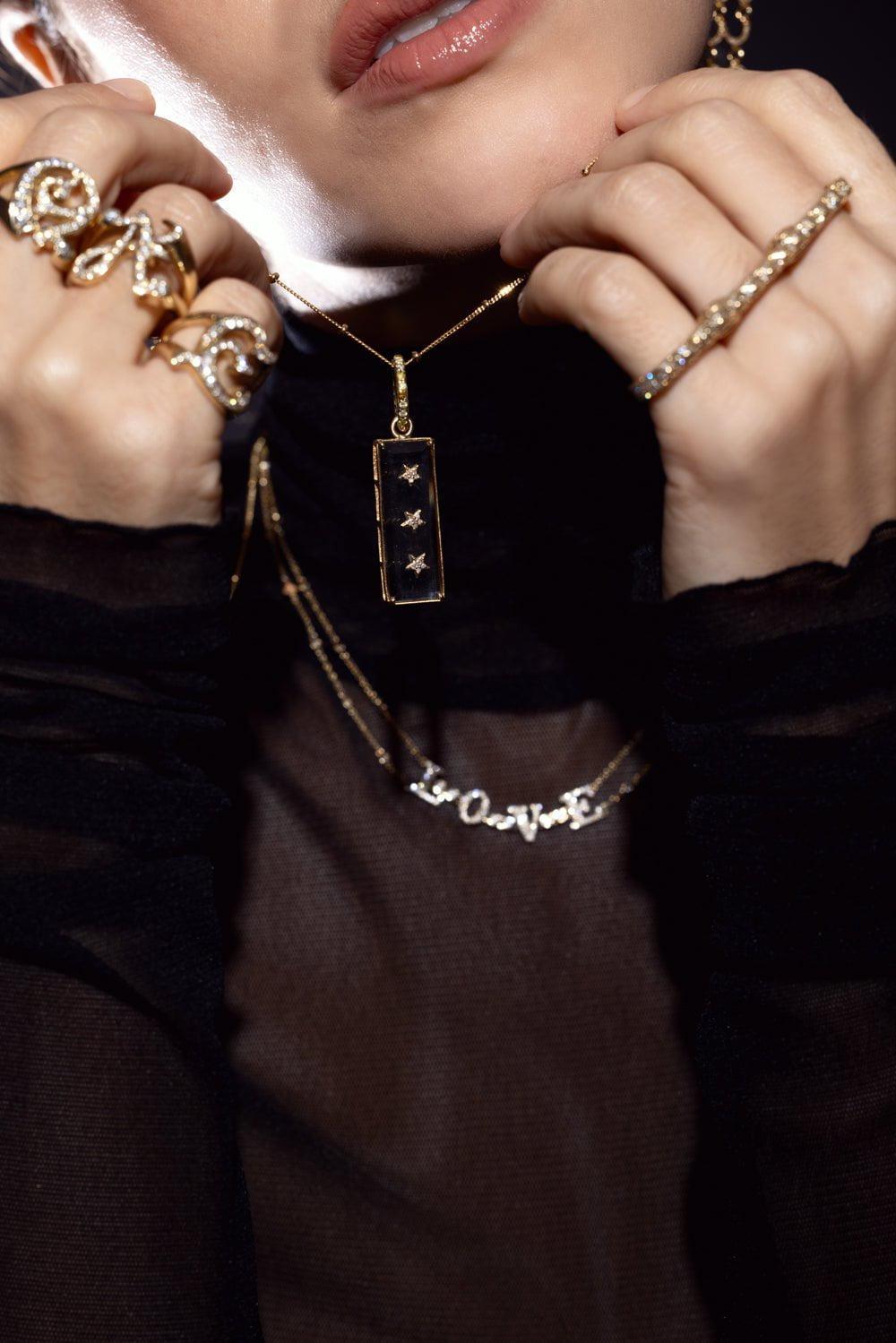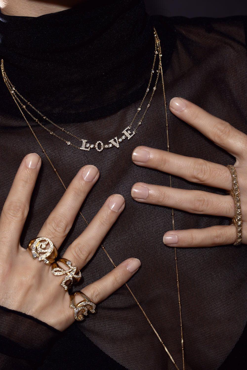 Loree Rodkin erica multi bead tiny chain necklace in yellow gold.