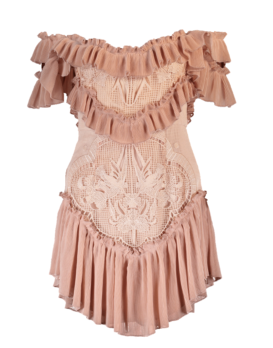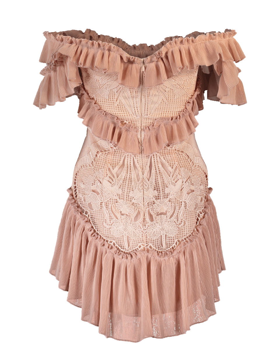 Off Shoulder Neckline With Back Zip Closure And Short Sleeves