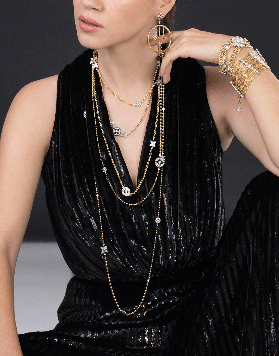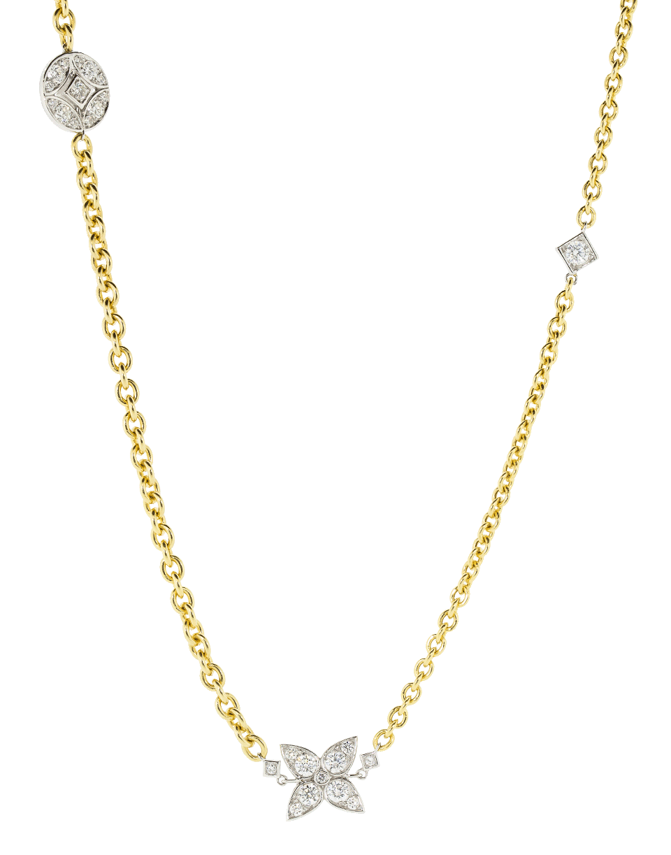 Mariani Lucilla Collection diamond station necklace on a 41" 18k yellow and white chain.