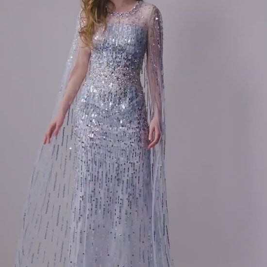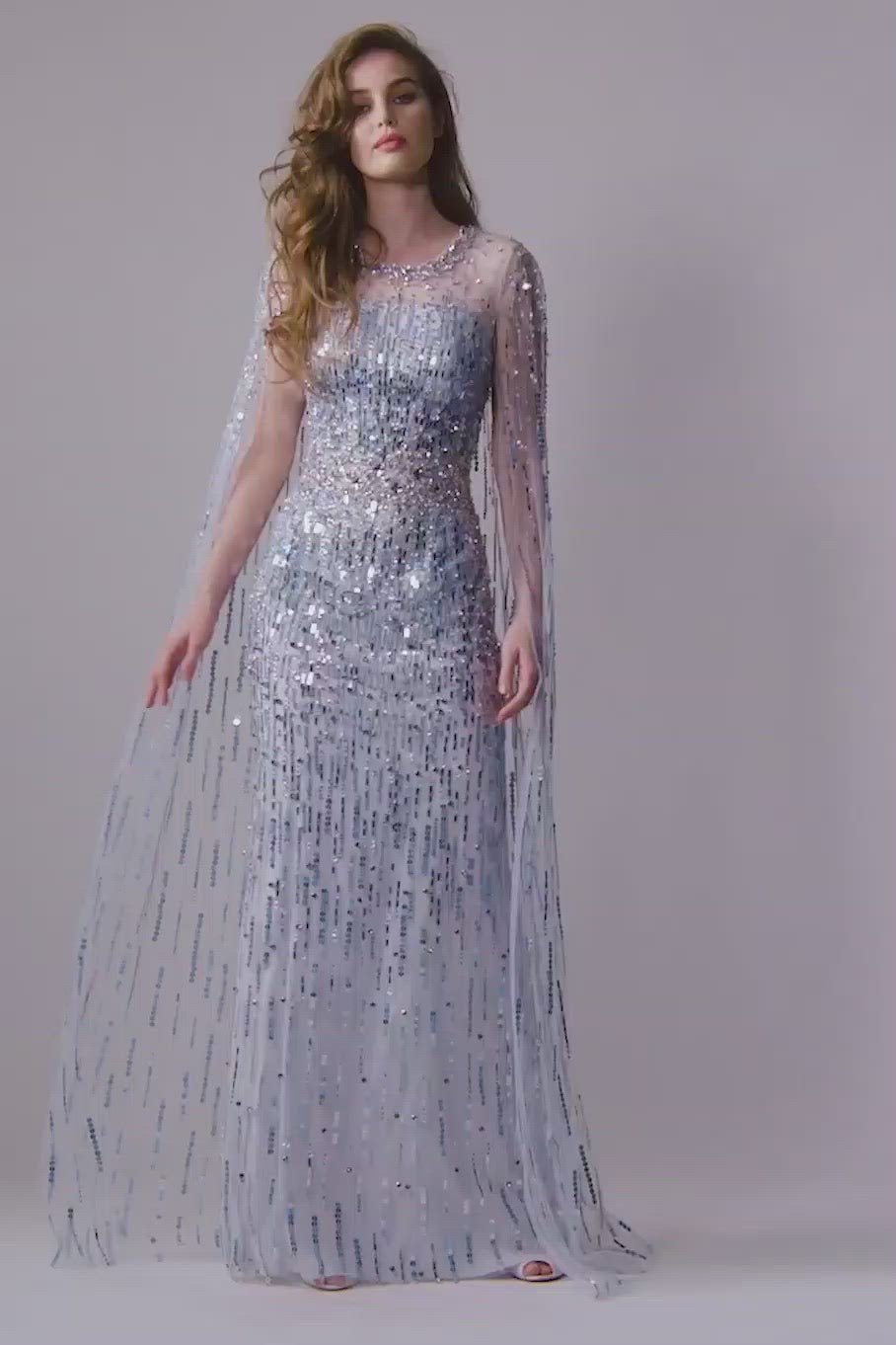 Jenny Packham lux sequin gown with cape pale powder.