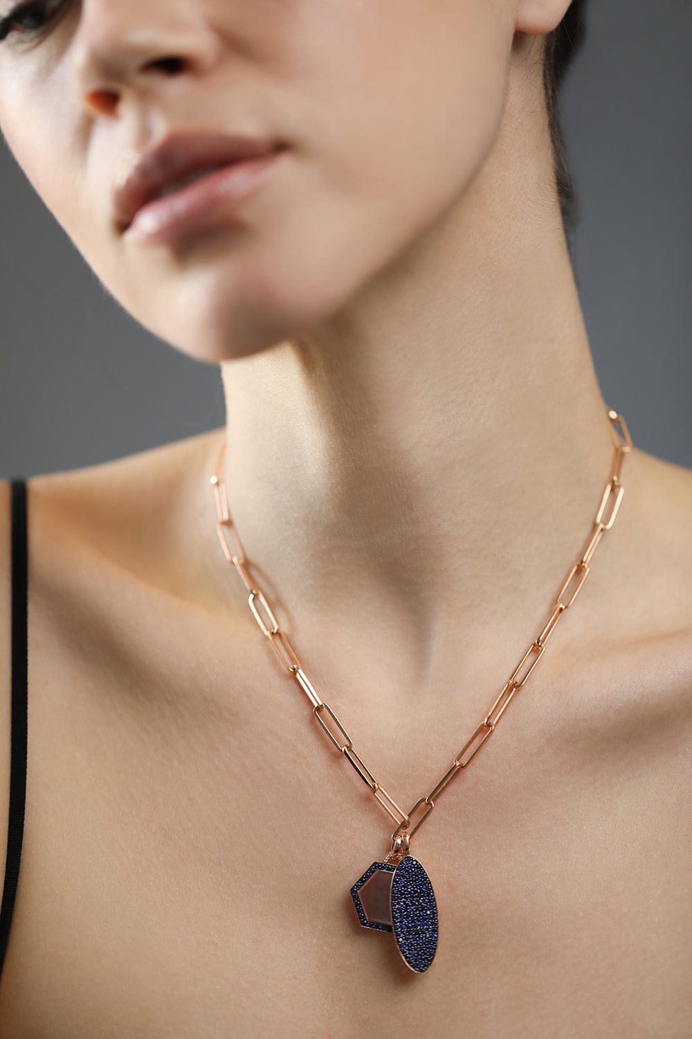 Walters Faith Lytton 18K Rose Gold all Blue Sapphire Oval Charm.