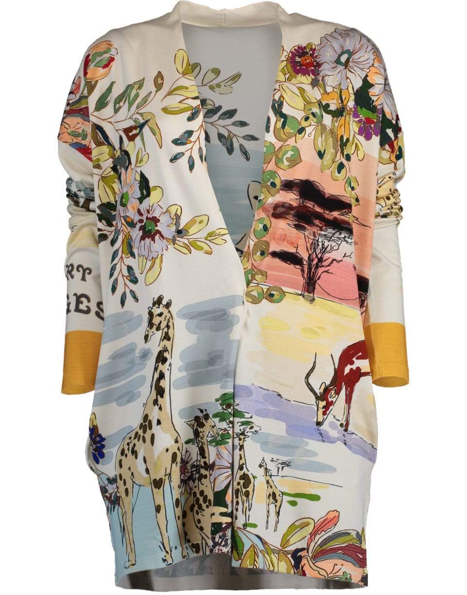Etro wool Maglia animal cardigan with a slim fit, thigh length, long sleeves, side pockets, and a collarless design.