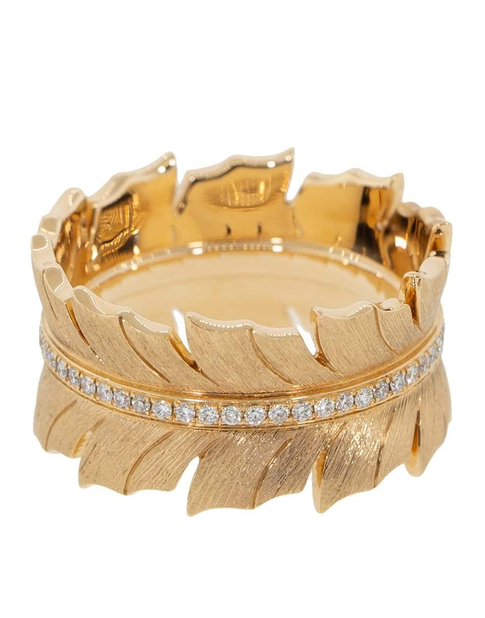 Magnipheasant pave white diamond feather band ring by Stephen Webster.