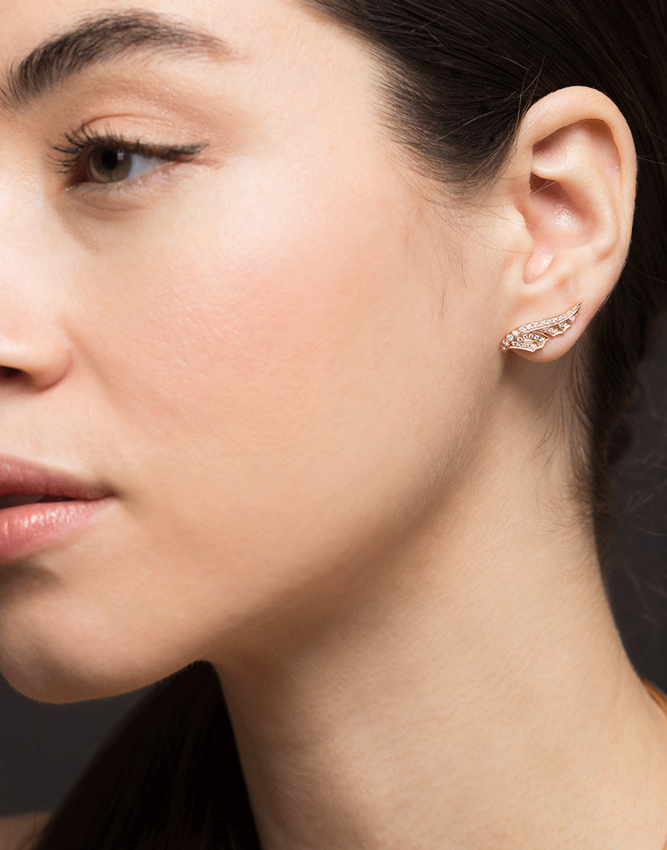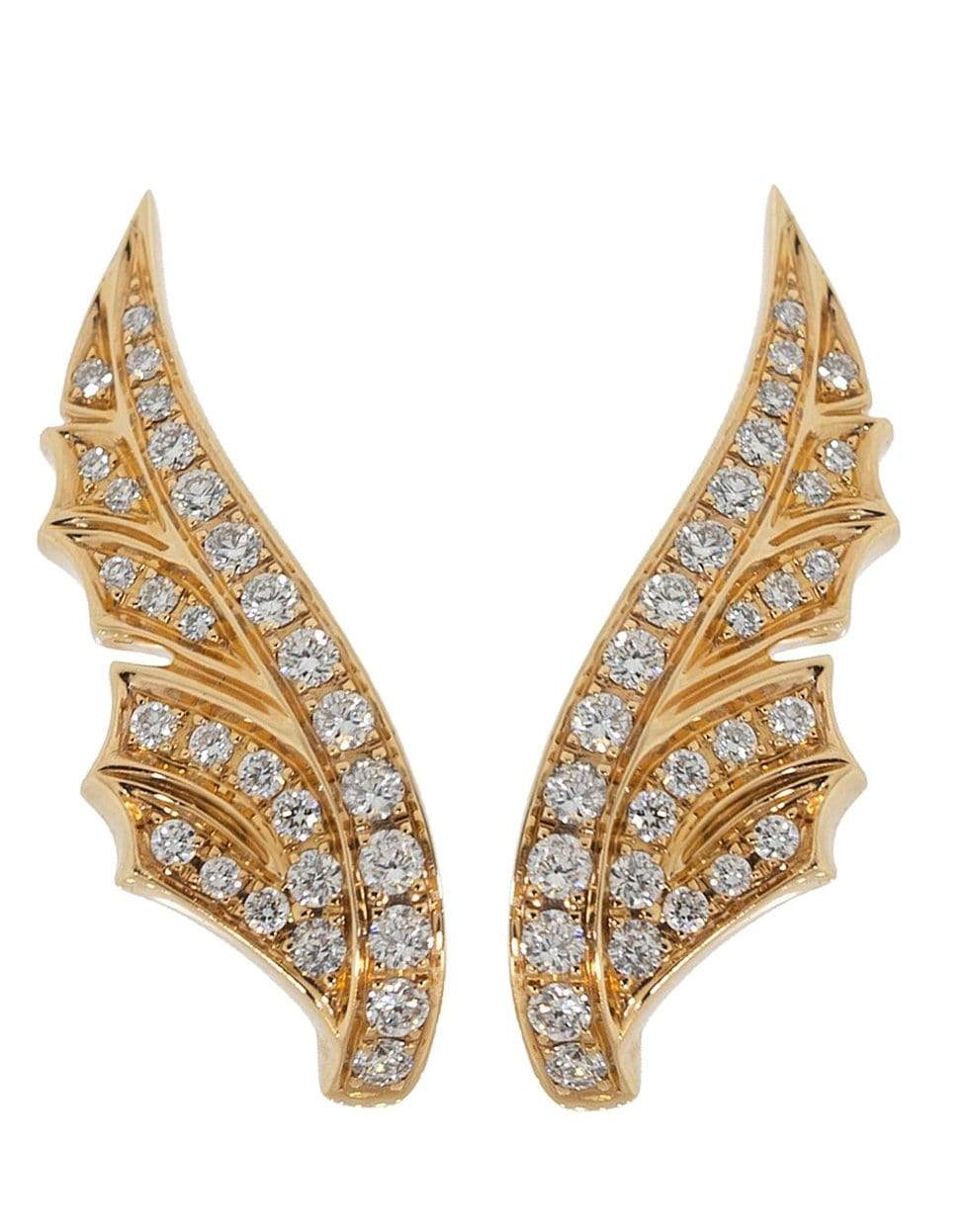 Magnipheasant pave white diamond feather earrings by Stephen Webster for pierced ears.