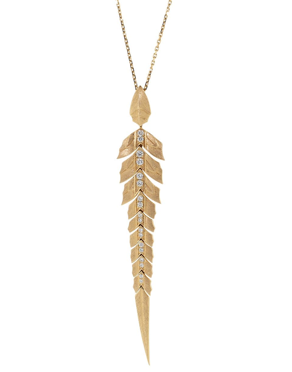 Magnipheasant pave diamond feather pendant necklace by Stephen Webster.