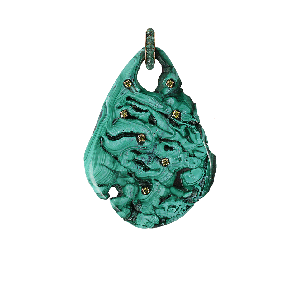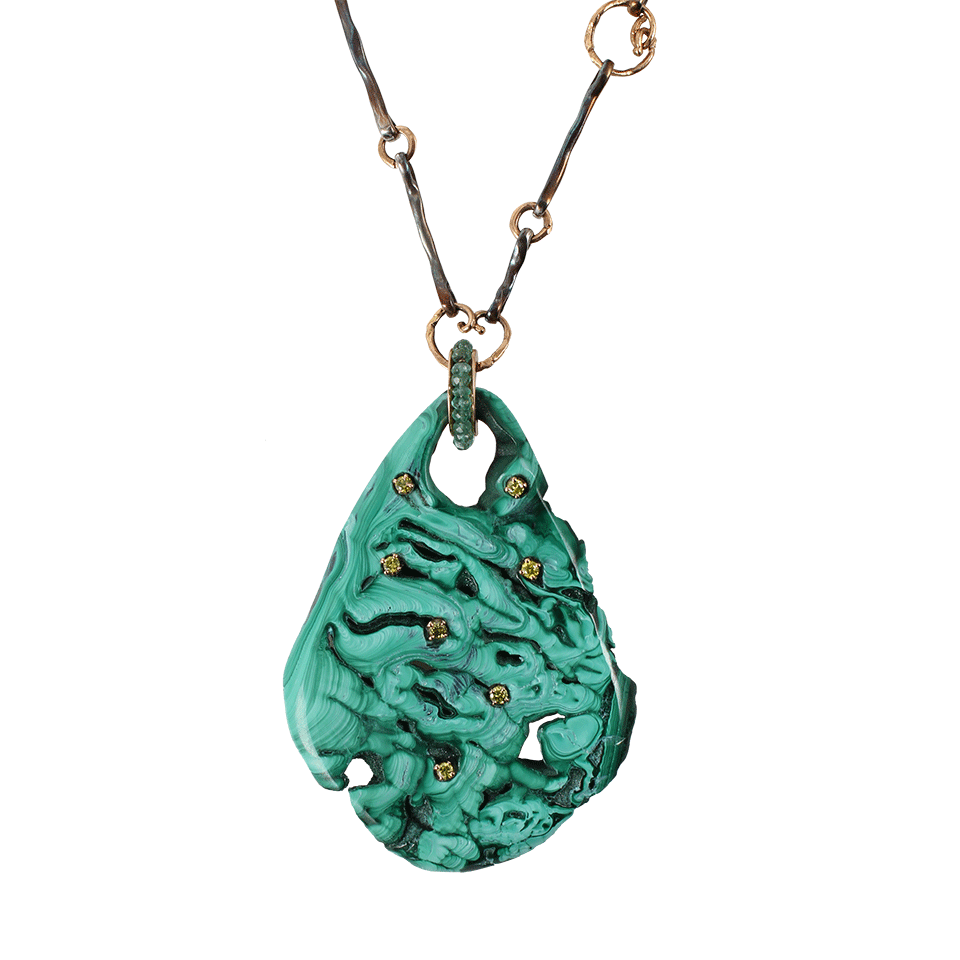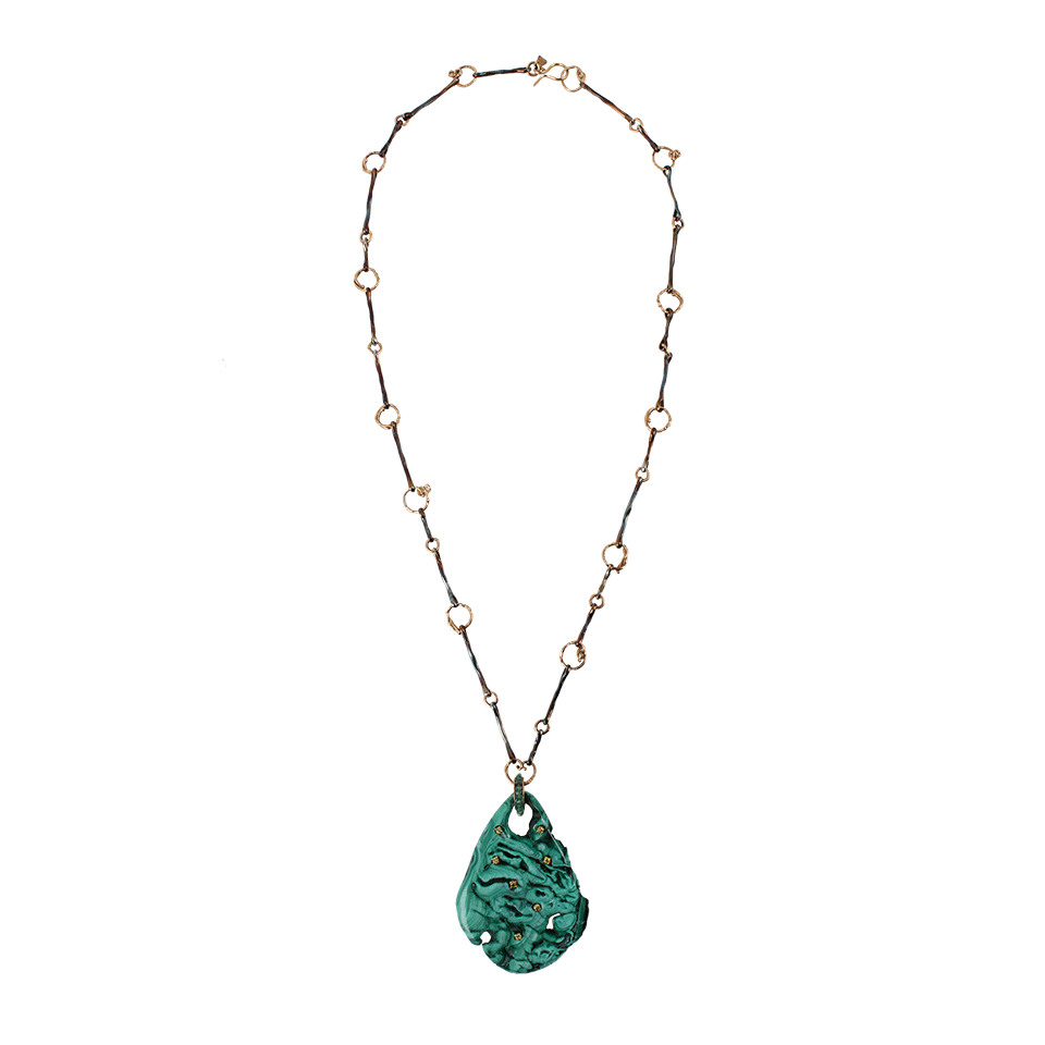 Give your jewelry collection a sliver of natural beauty with Federica Rettore’s malachite pendant necklace. Flaunt this necklace with a boatneck blouse and floor length maxi skirt for a boho chic ensemble.