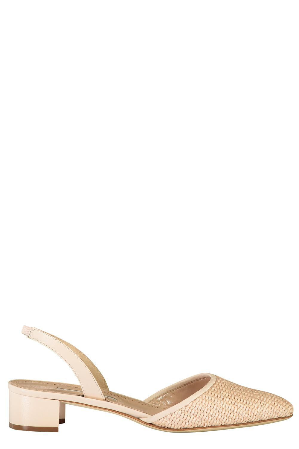 Manolo Blahnik raffro samba tondo 030 sandal in nude.