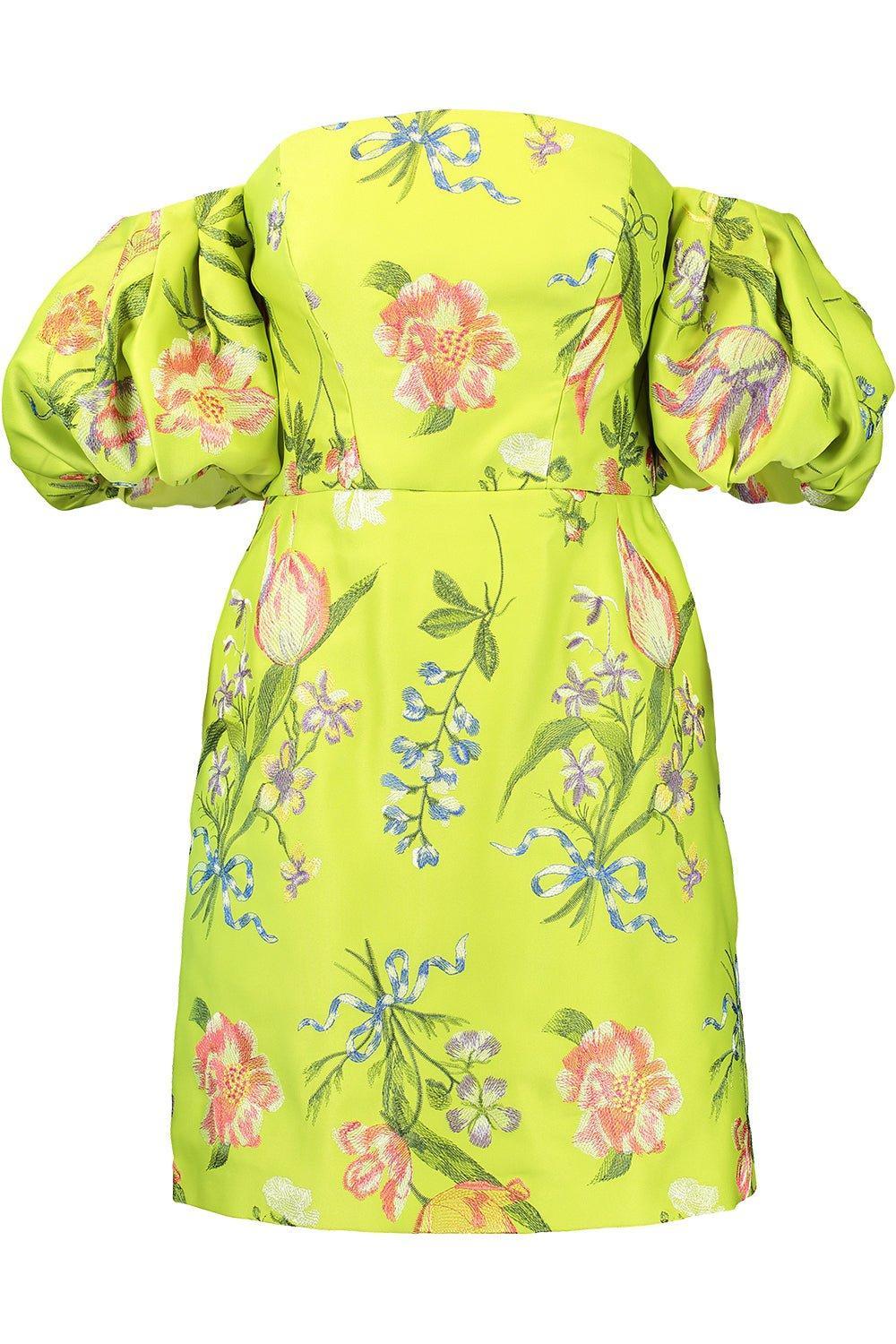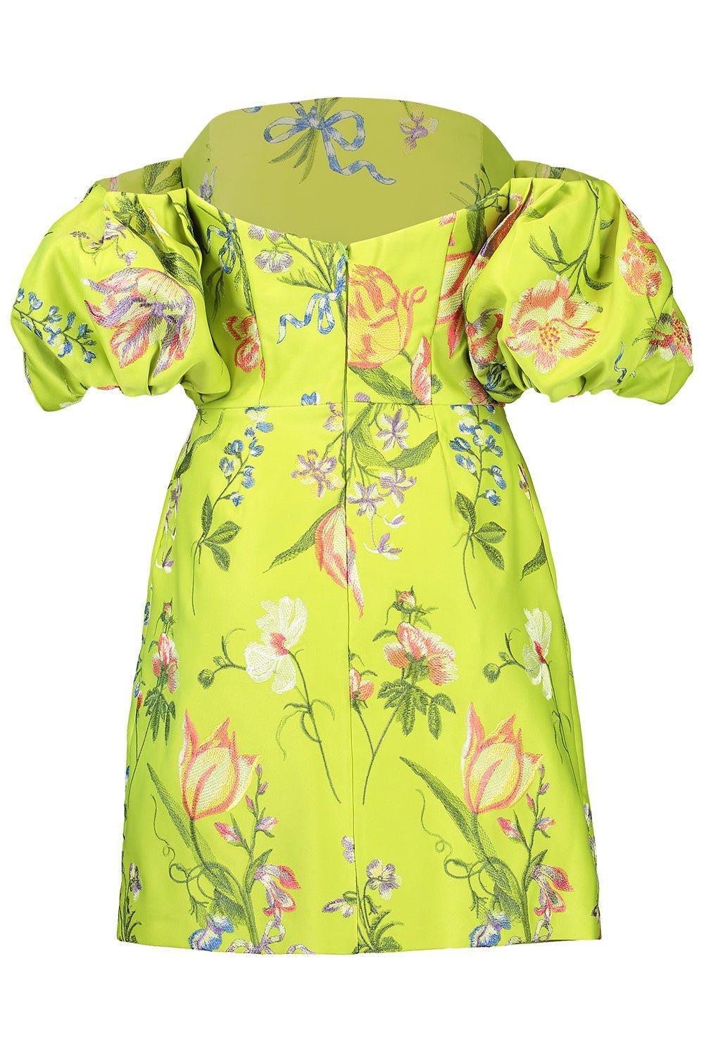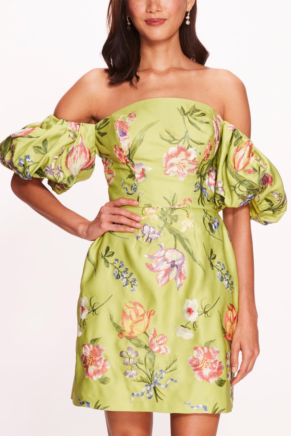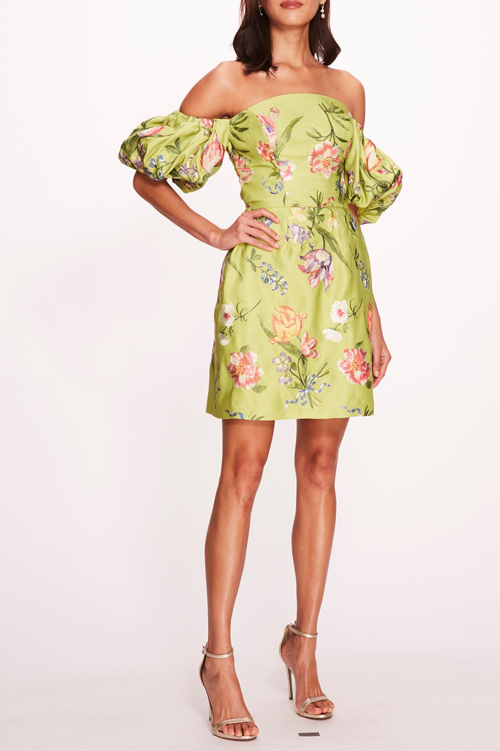 Marchesa Notte puff sleeve mini dress in spring green multi.