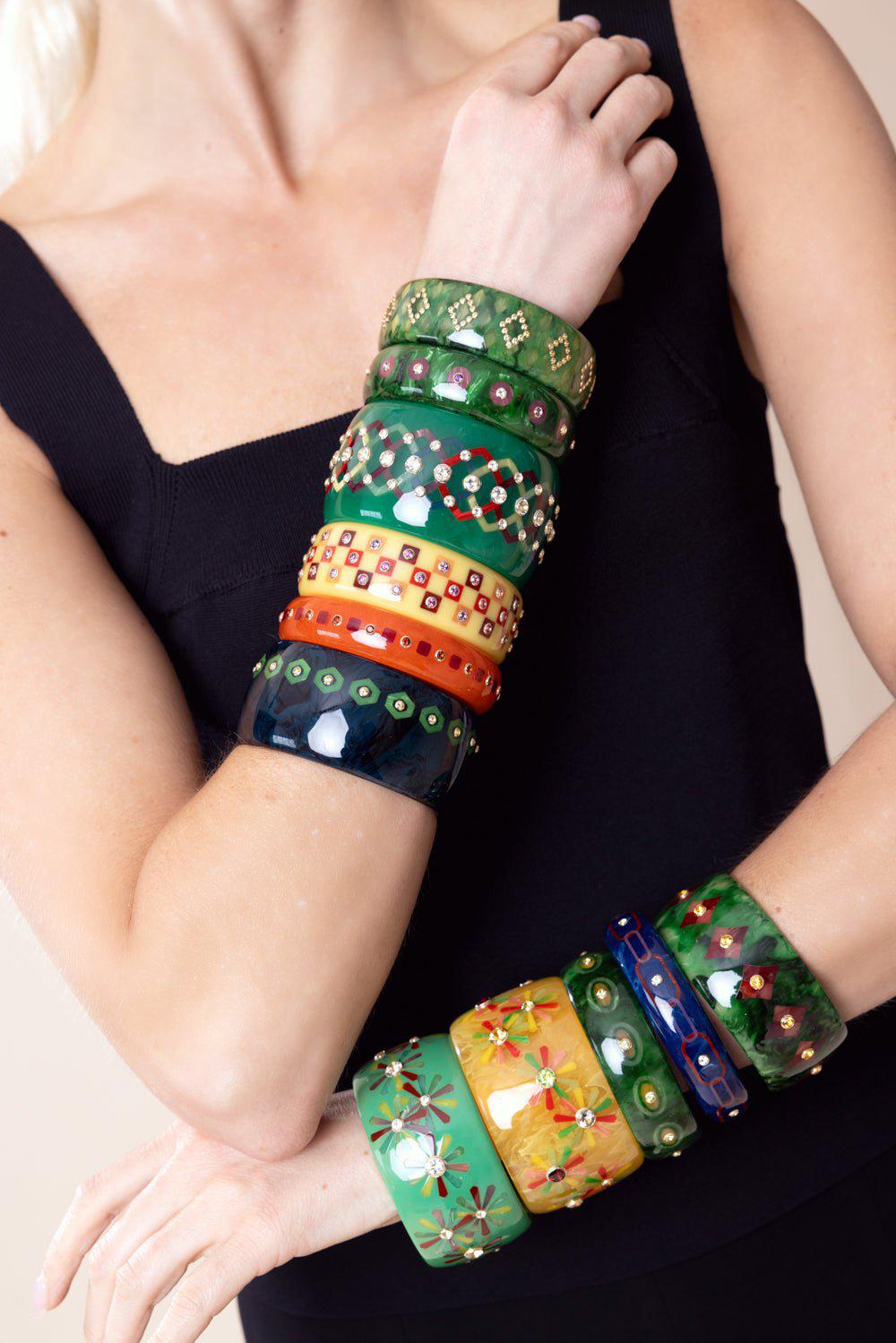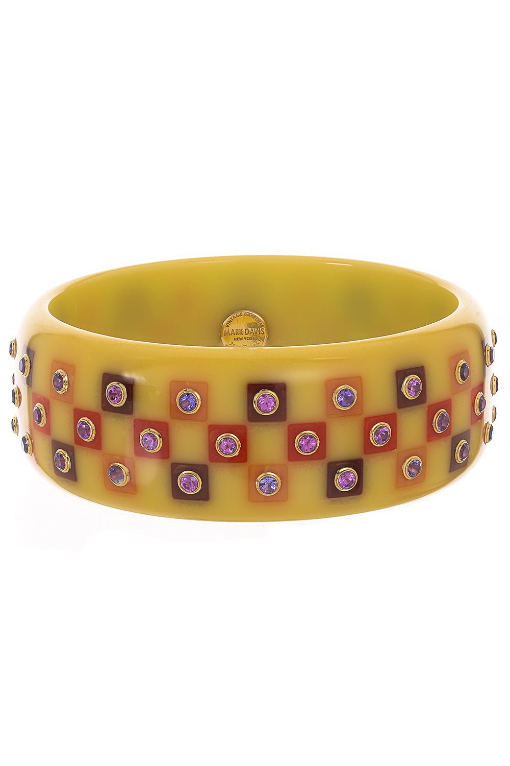 Mark Davis amethyst yellow bakelite bangle bracelet in yellow gold.