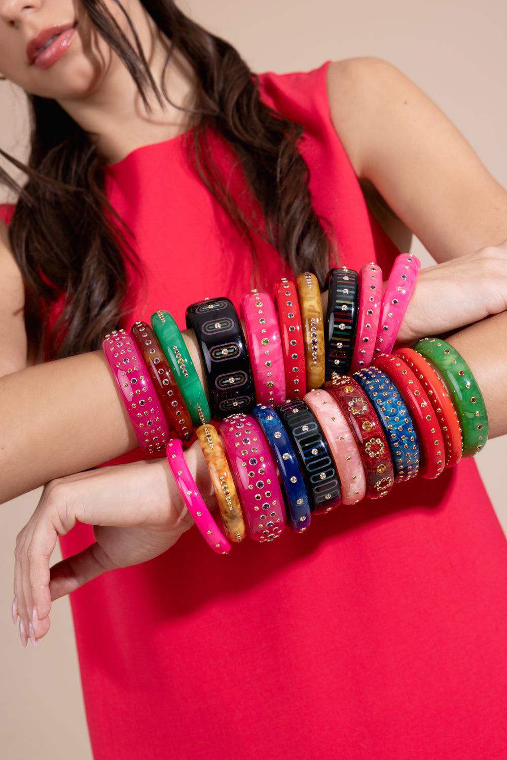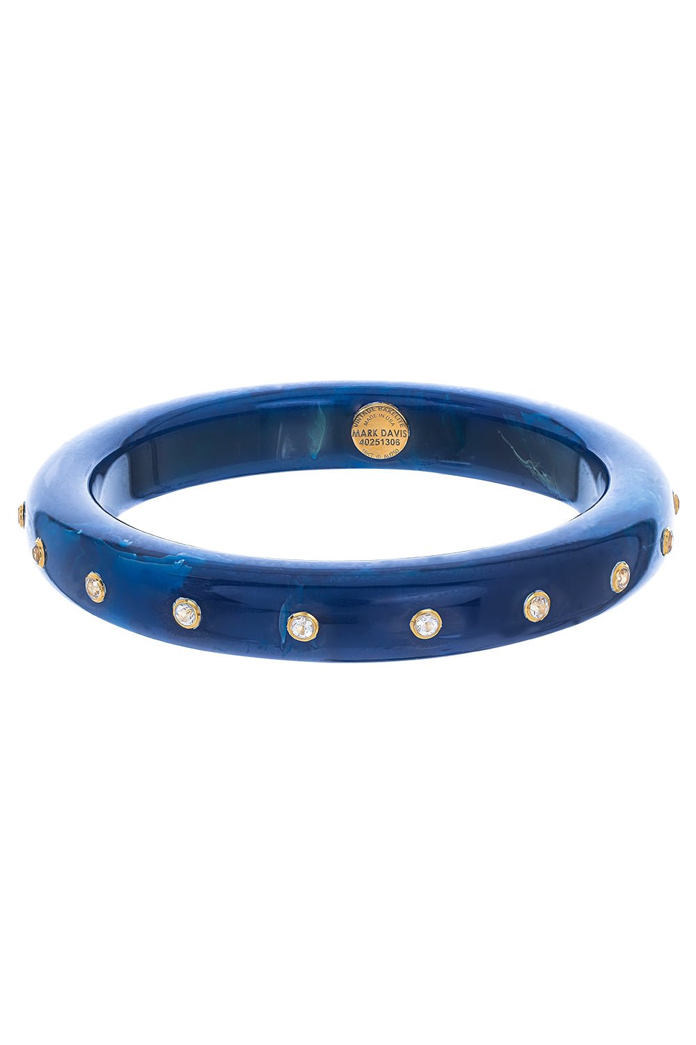 Mark Davis white topaz blue bakelite bangle in yellow gold.