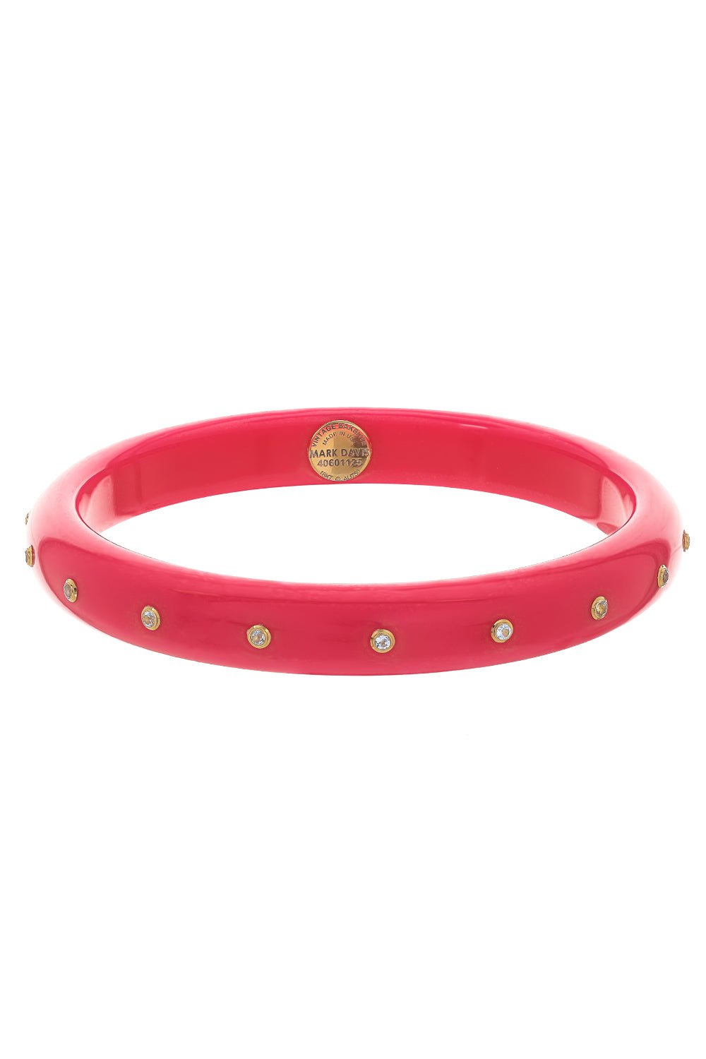 Mark Davis white topaz pink bakelite bangle in yellow gold.