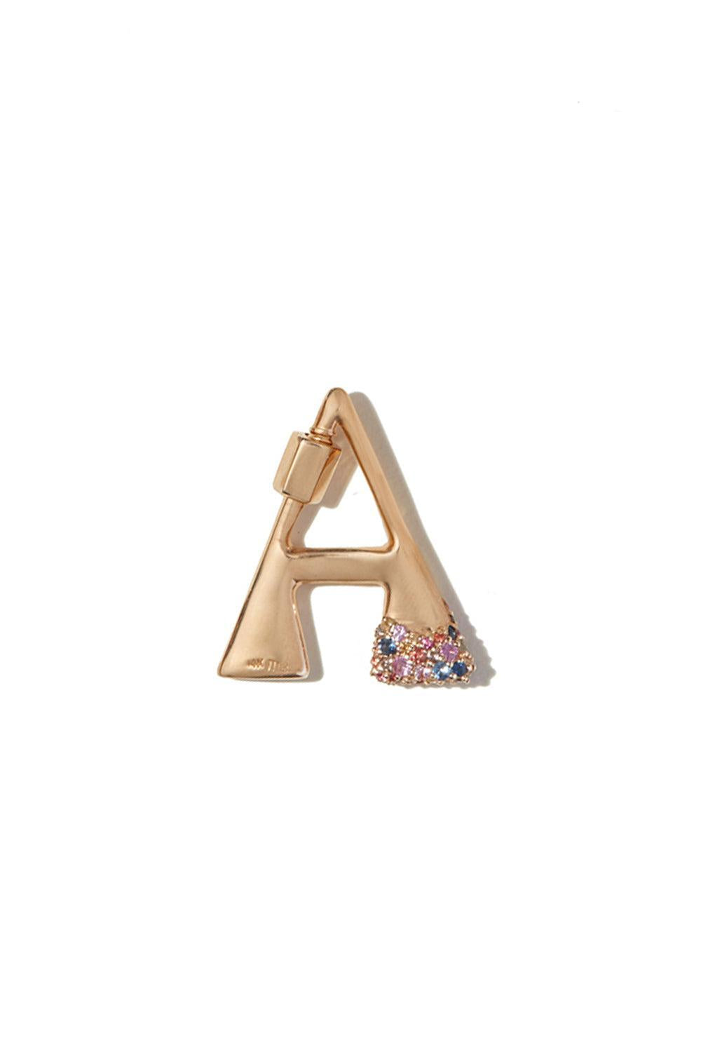 Marla Aaron mixed sapphire a initial lock in rose gold.