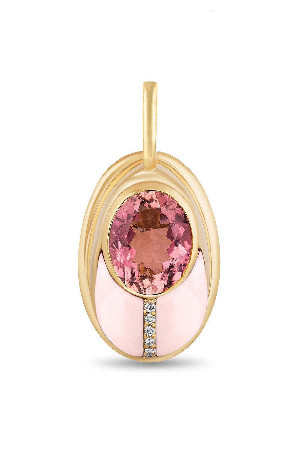 Mason & Books pink tourmaline love bug pendant in yellow gold.