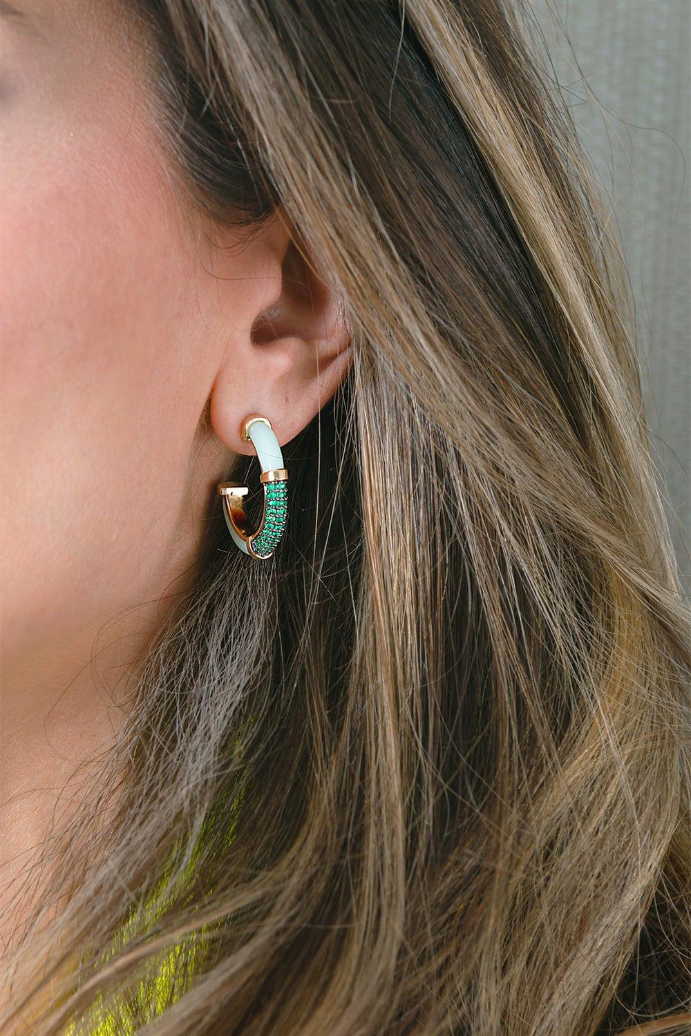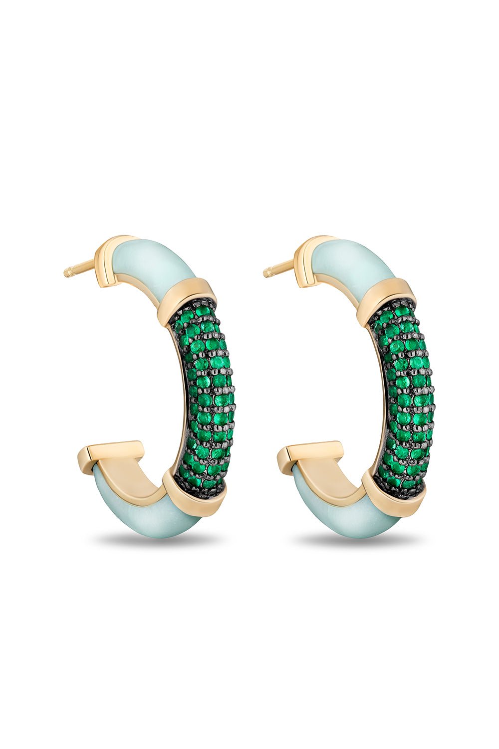 Mason & Books sugar and spice emerald hoop earrings in yellow gold.
