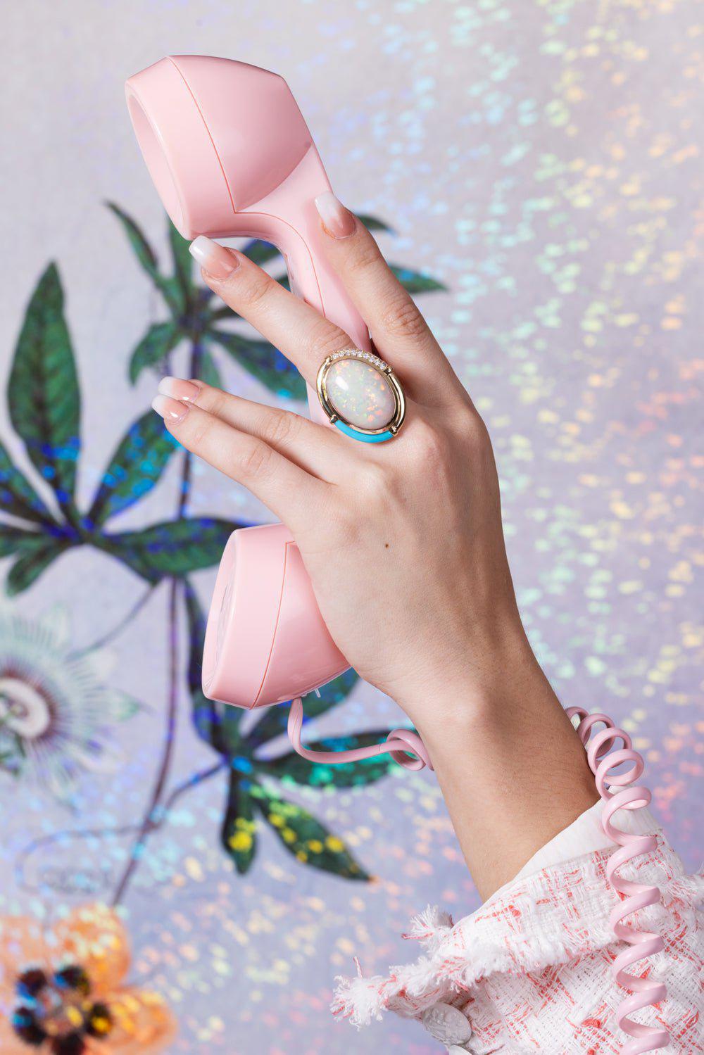 Mason & Books turquoise sugar and spice cocktail ring in yellow gold.