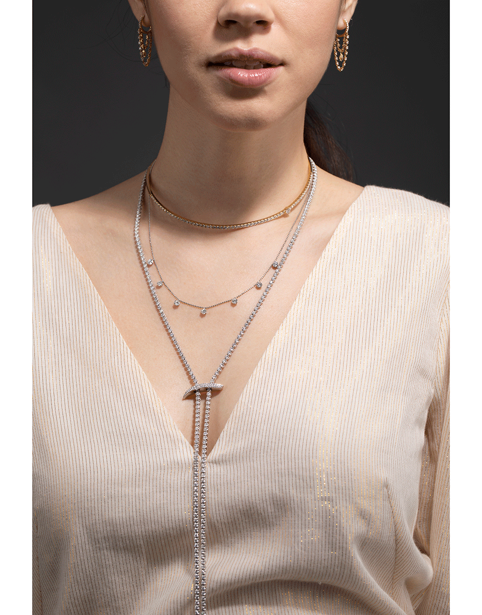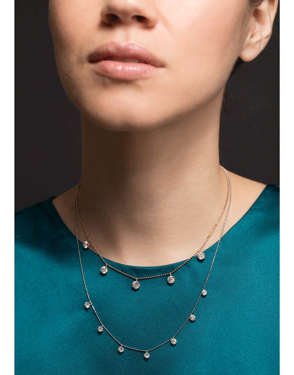 Graziela medium floating white diamond necklace on an adjustable 18k yellow gold.