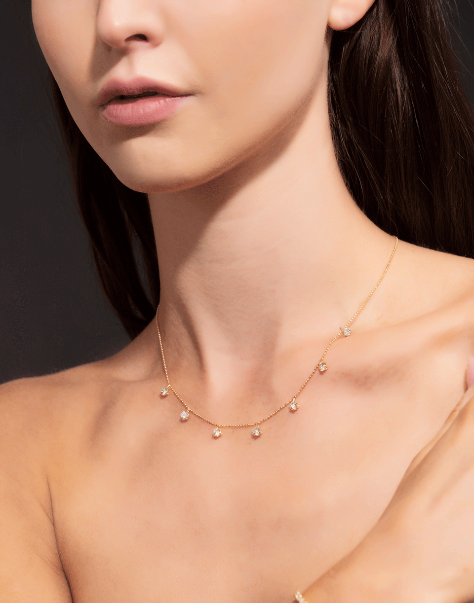 Graziela medium floating white diamond necklace on an adjustable 18k yellow gold.