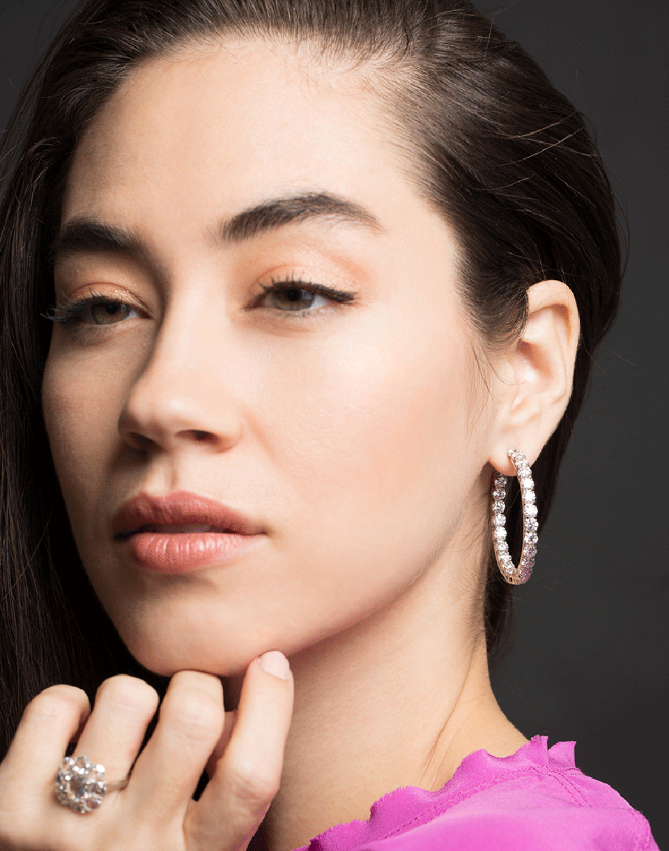 Medium round diamond hoop earrings by Bayco. For pierced ears.