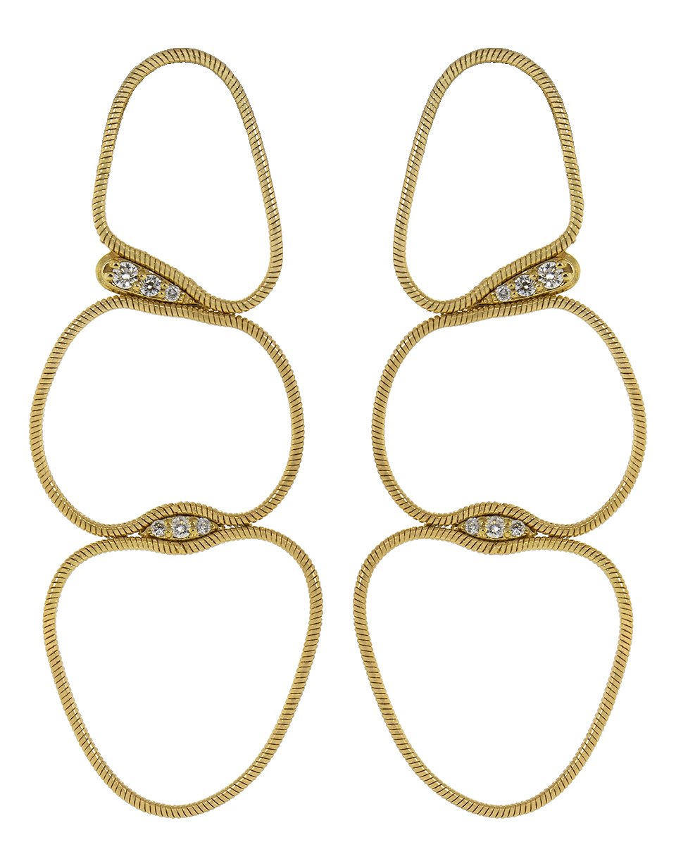These innovative diamond chain earrings from Fernando Jorge’s first eponymous collection, Fluid, are designed with carefully selected white diamonds and snake chain to achieve an effortlessly fluid and organic form. For pierced ears.