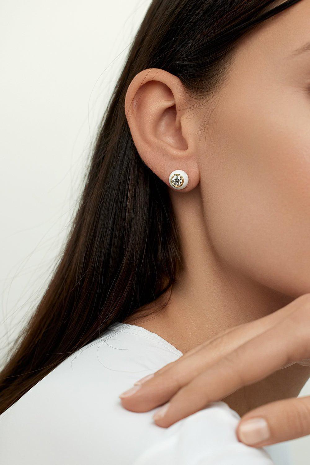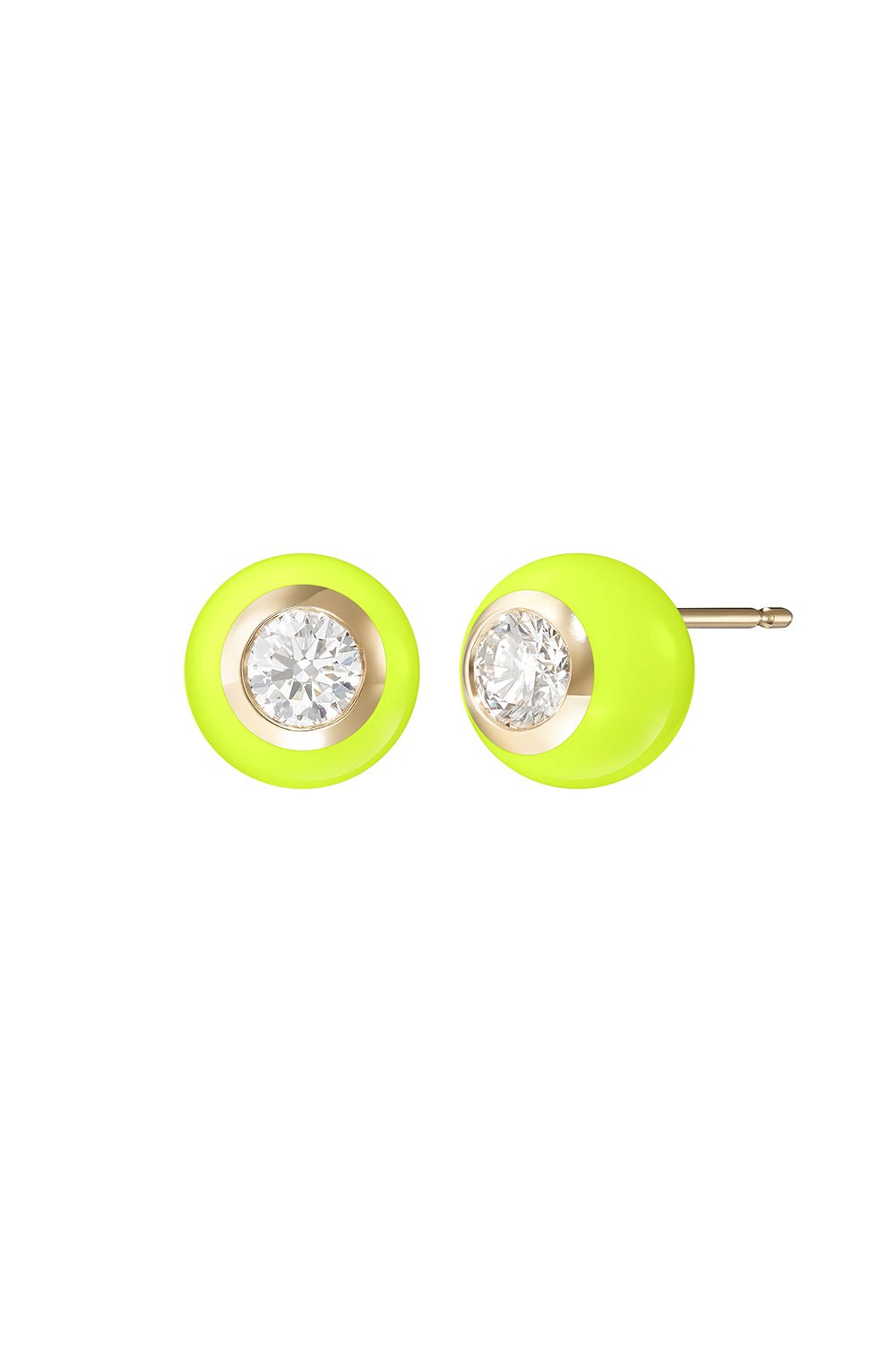 Melissa Kaye neon yellow large audrey stud earrings in yellow gold.