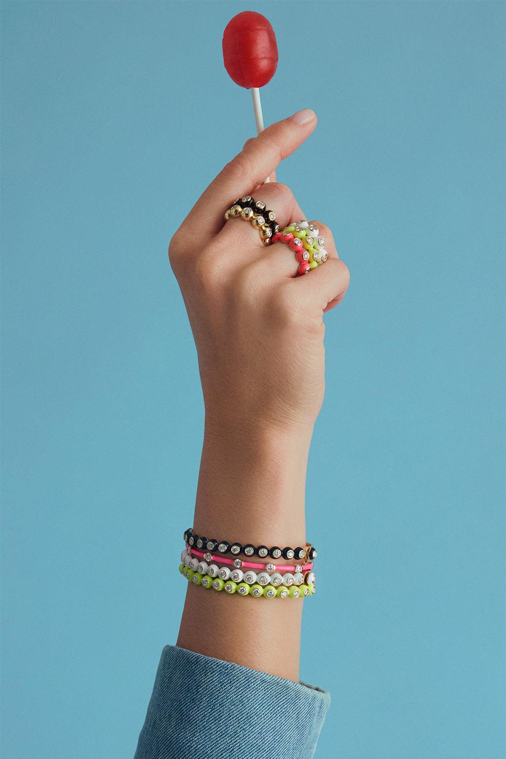 Melissa Kaye white audrey hinged bangle bracelet in yellow gold.