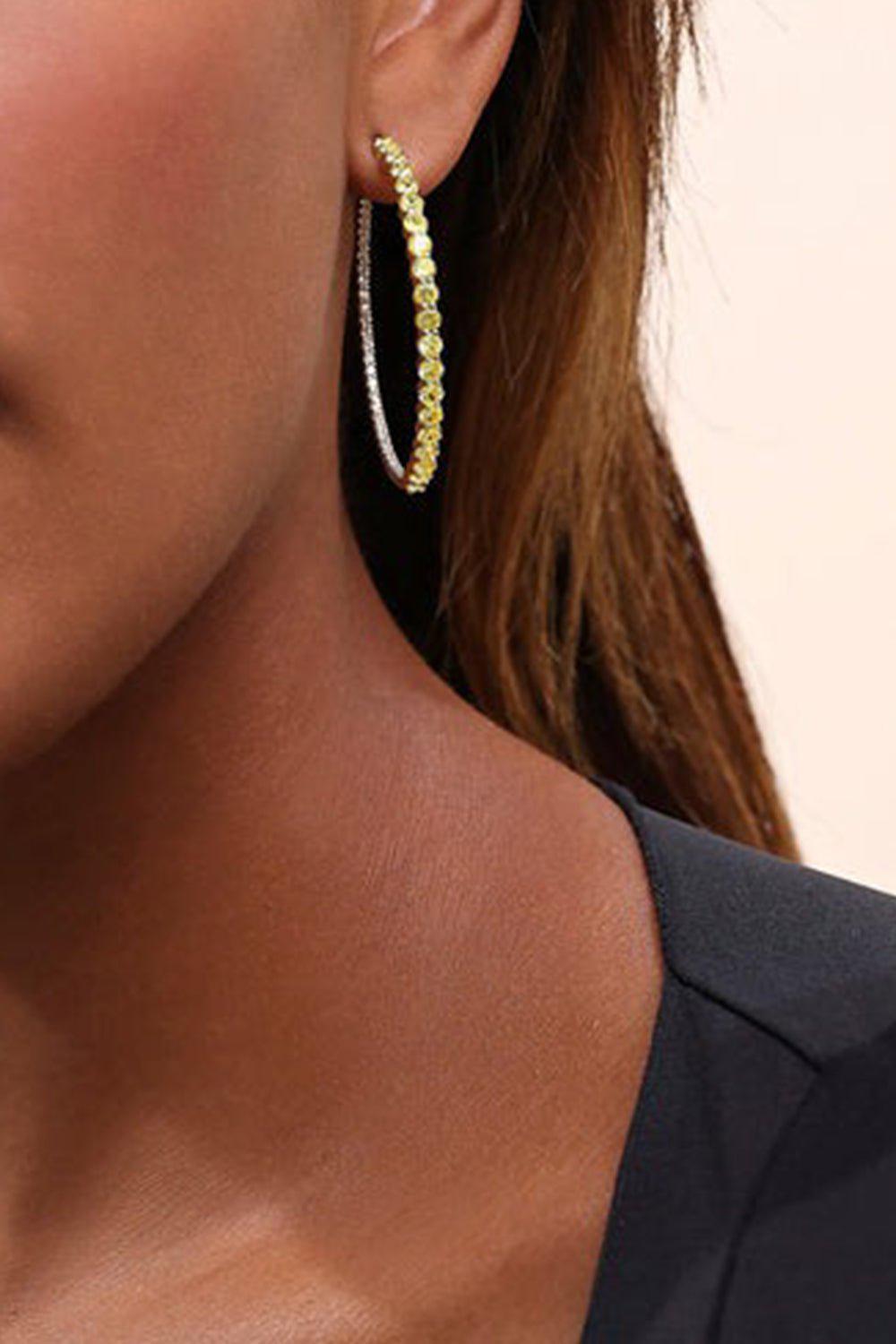 Melissa Kaye yellow sapphire lenox hoop earrings in yellow gold.