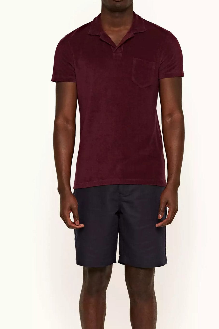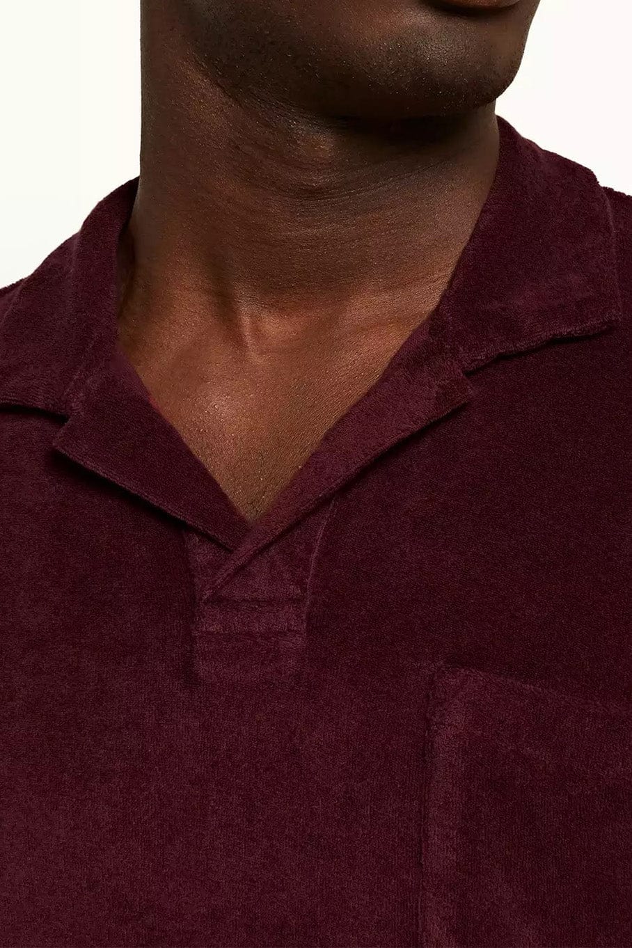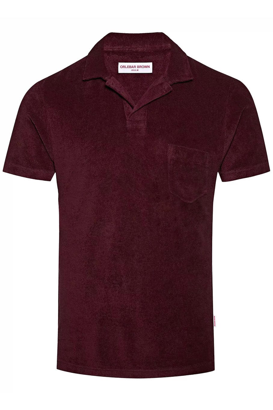 Orlebar Brown men’s terry toweling polo in port.