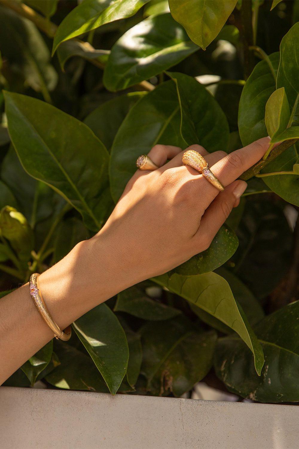 Meredith Young sunset stacking ring in yellow gold.