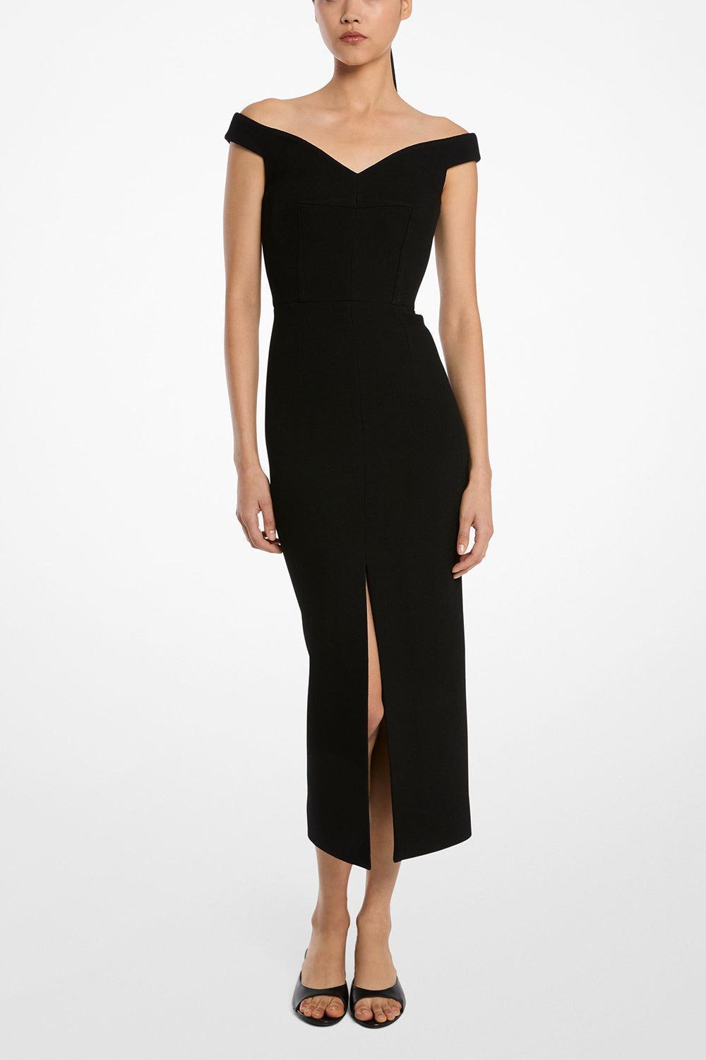 Michael Kors off shoulder sheath dress in black.