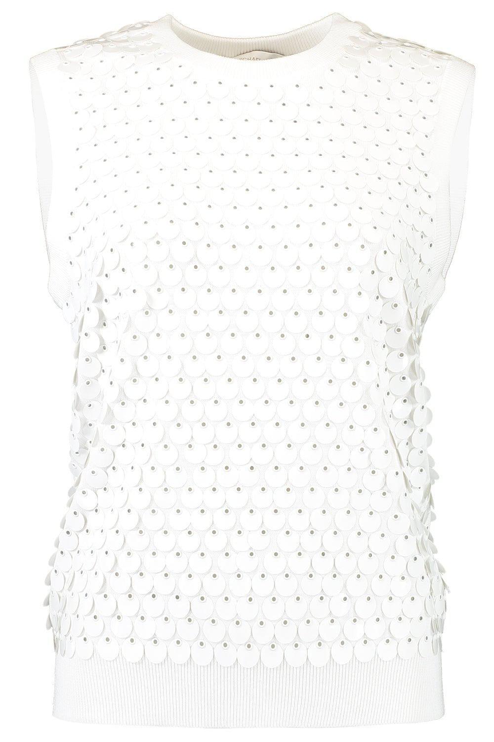 Michael Kors paillette embellished sleeveless sweater in optic white.
