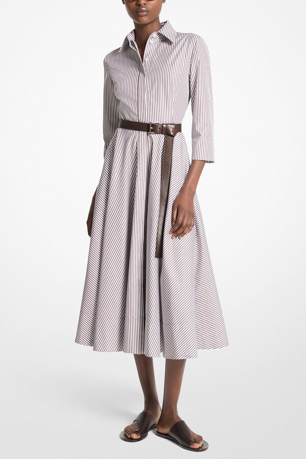 Michael Kors short sleeve shirt dress in mocha/optic white.