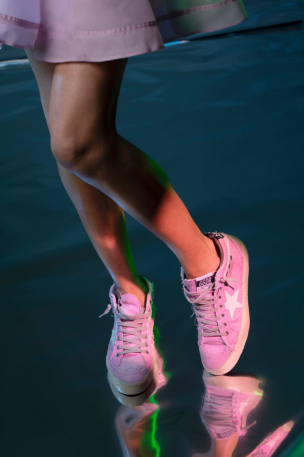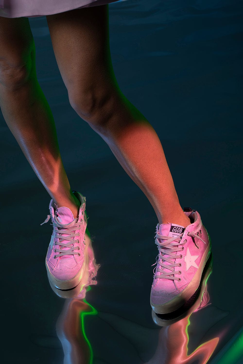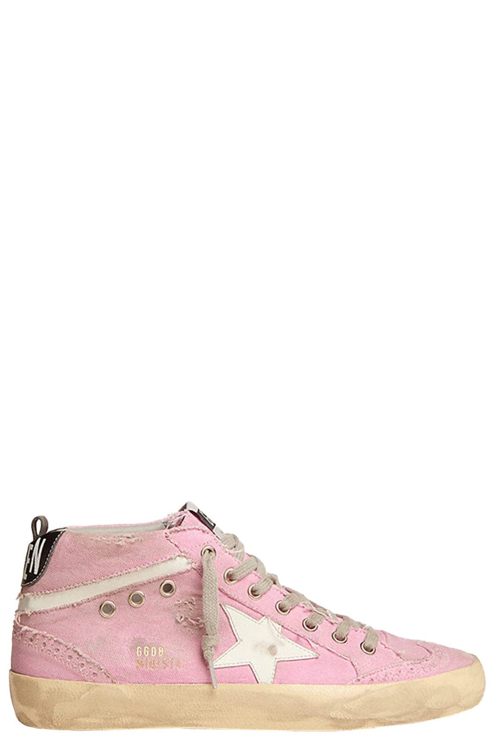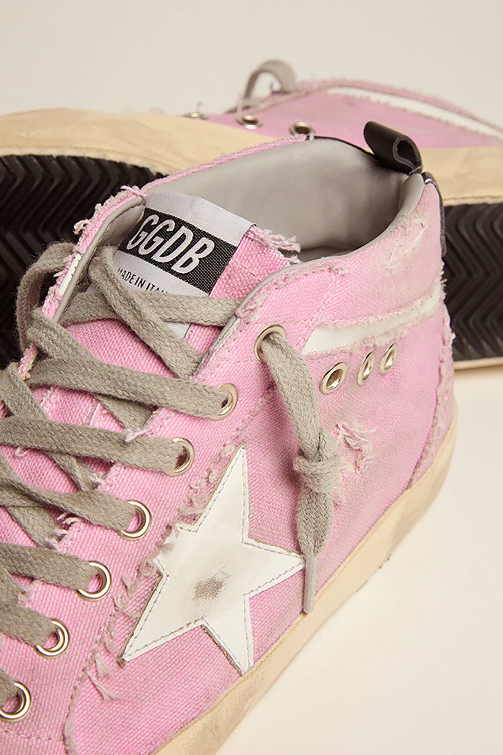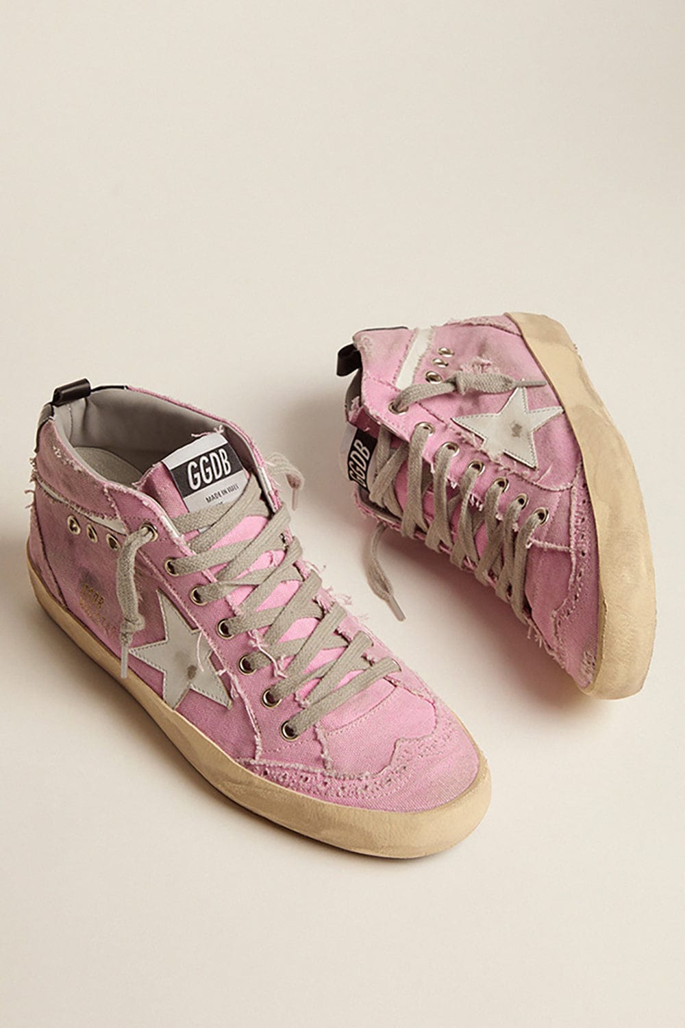 Golden Goose mid star canvas leather start sneakers in pink white.